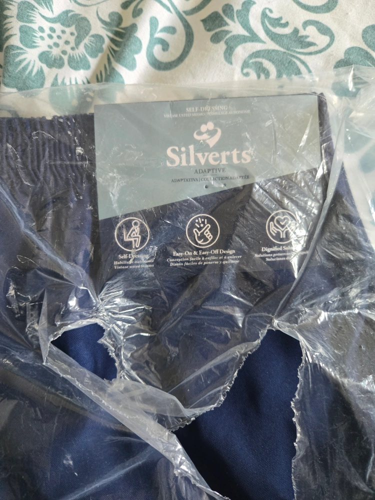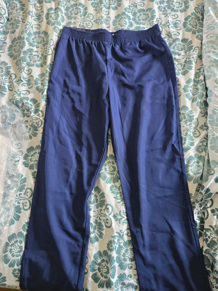 Navy-blue pants. Features an elastic waistband. The tag indicates the pants are self-dressing. These pants would be very comfortable. I got it for my mom but she didn't like the colour . can be for older ladies or women. pick in north york Victoria and rowena dr.