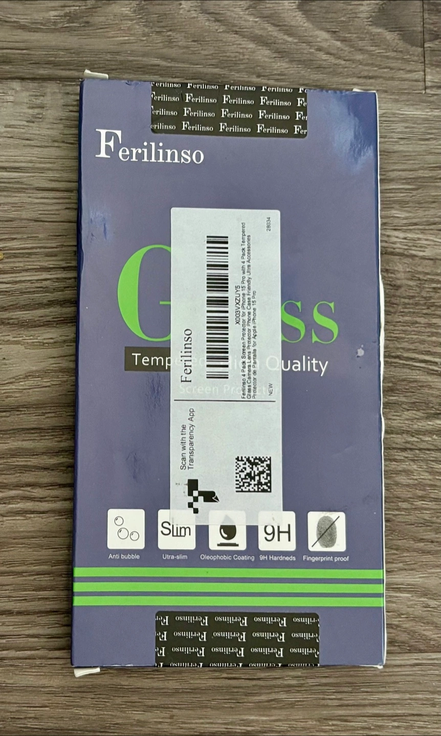 Screen Protector for iPhone 15 Pro, 4 Tempered Glass Film and 4 Camera Lens Protectors with 1 Installation Alignment Aid, Bubble-Free, HD Clear, 6.1-Inch