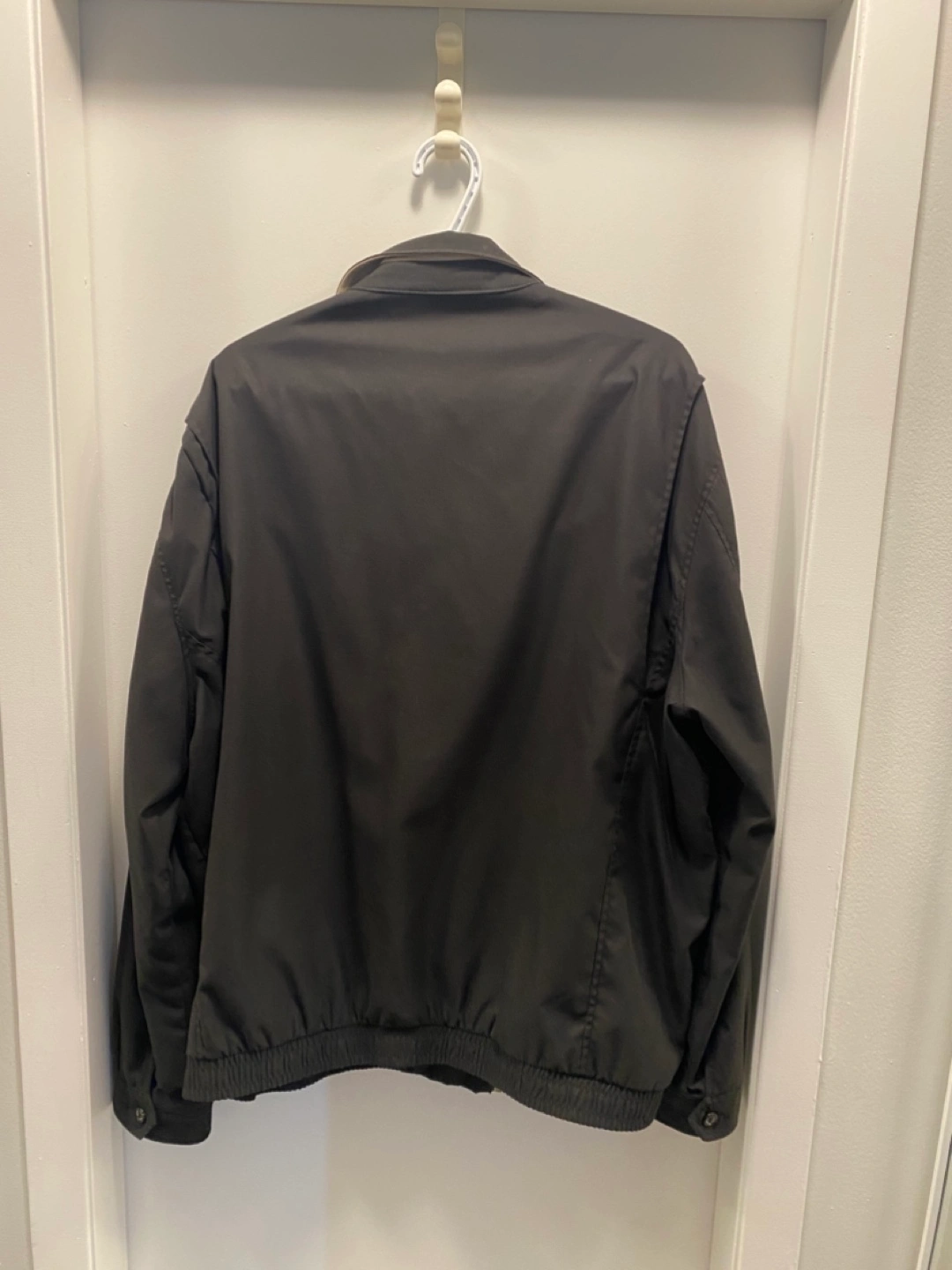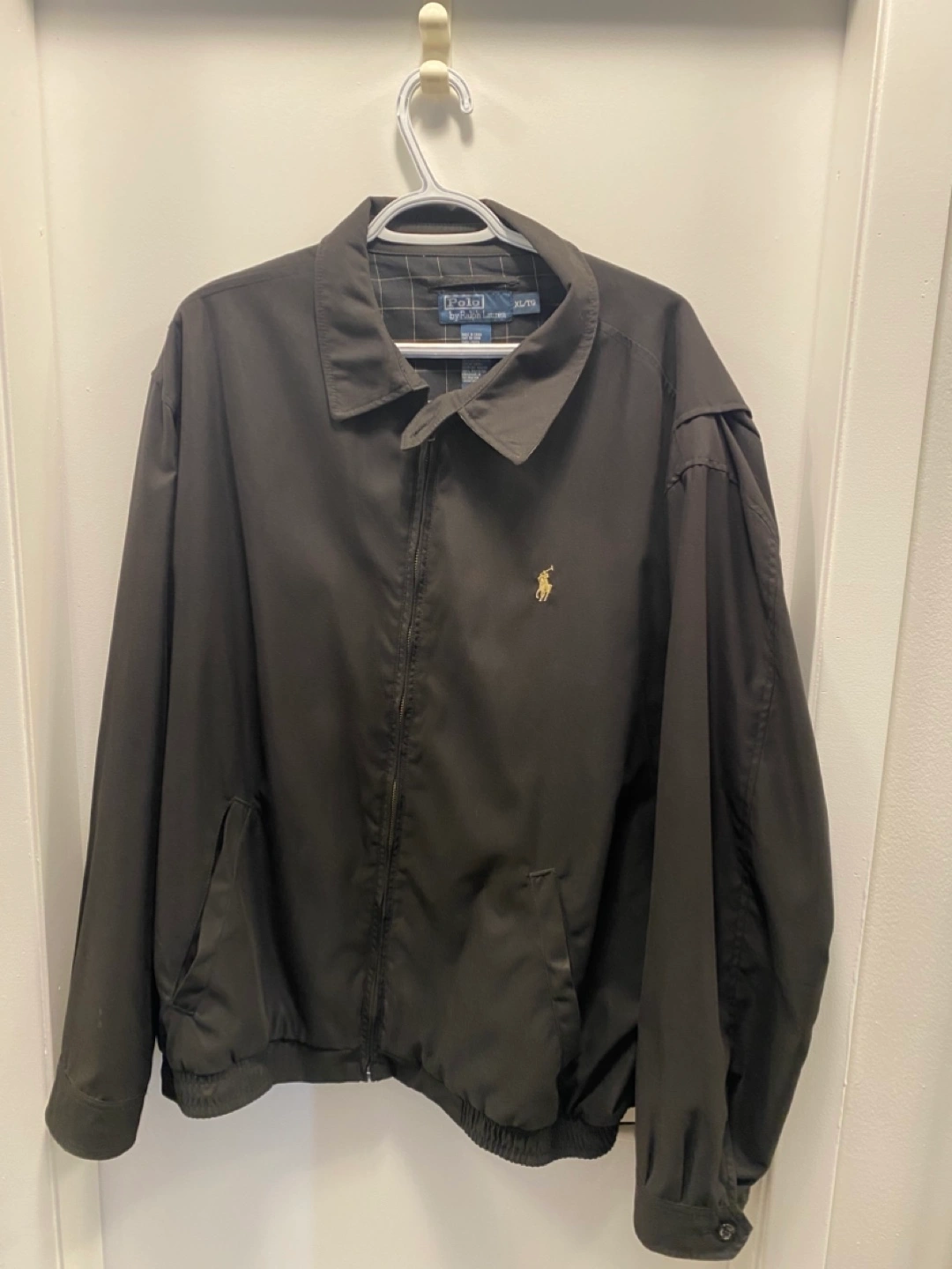 A classic black jacket. With a zip-up closure and two front pockets. Features a small logo on the chest. Perfect for layering on cooler days.