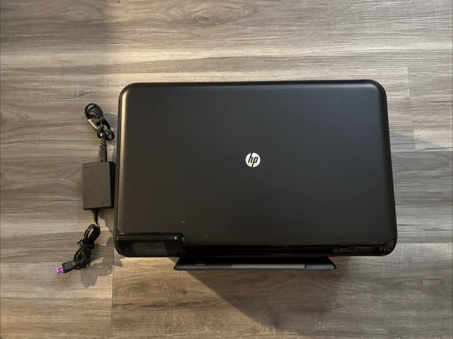 Black printer. Features a touchscreen, eprint wireless capabilities and a scanner bed. Also includes a power cord. This printer is perfect for creating some peace and quiet while you focus on tasks.