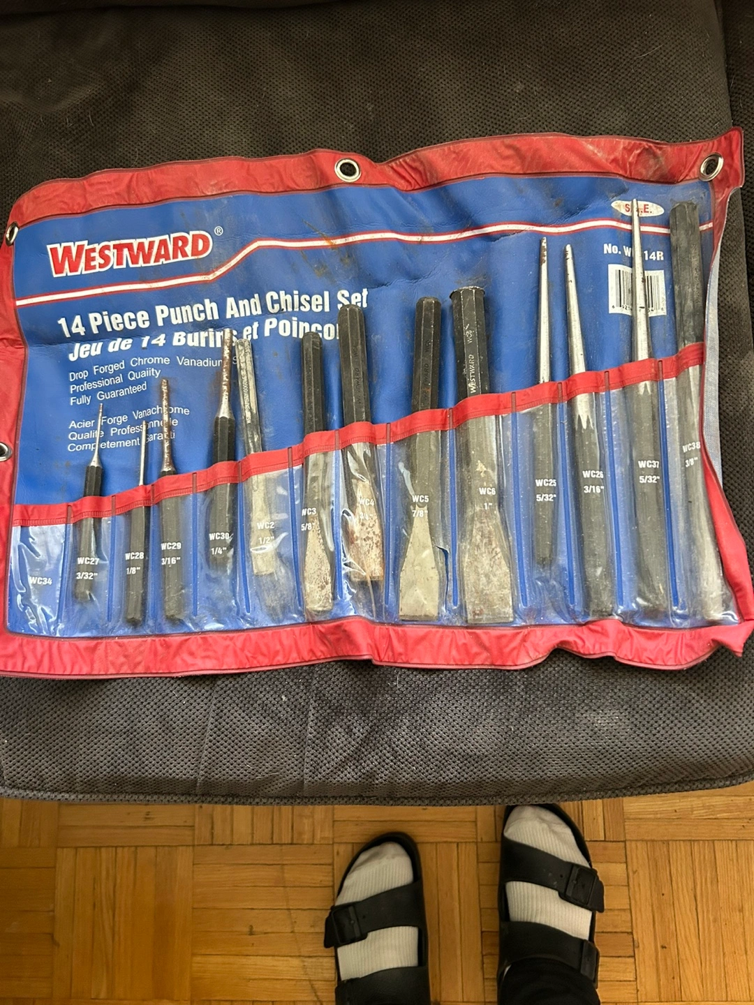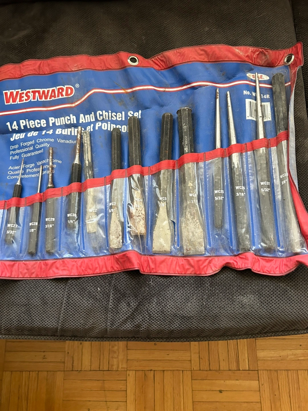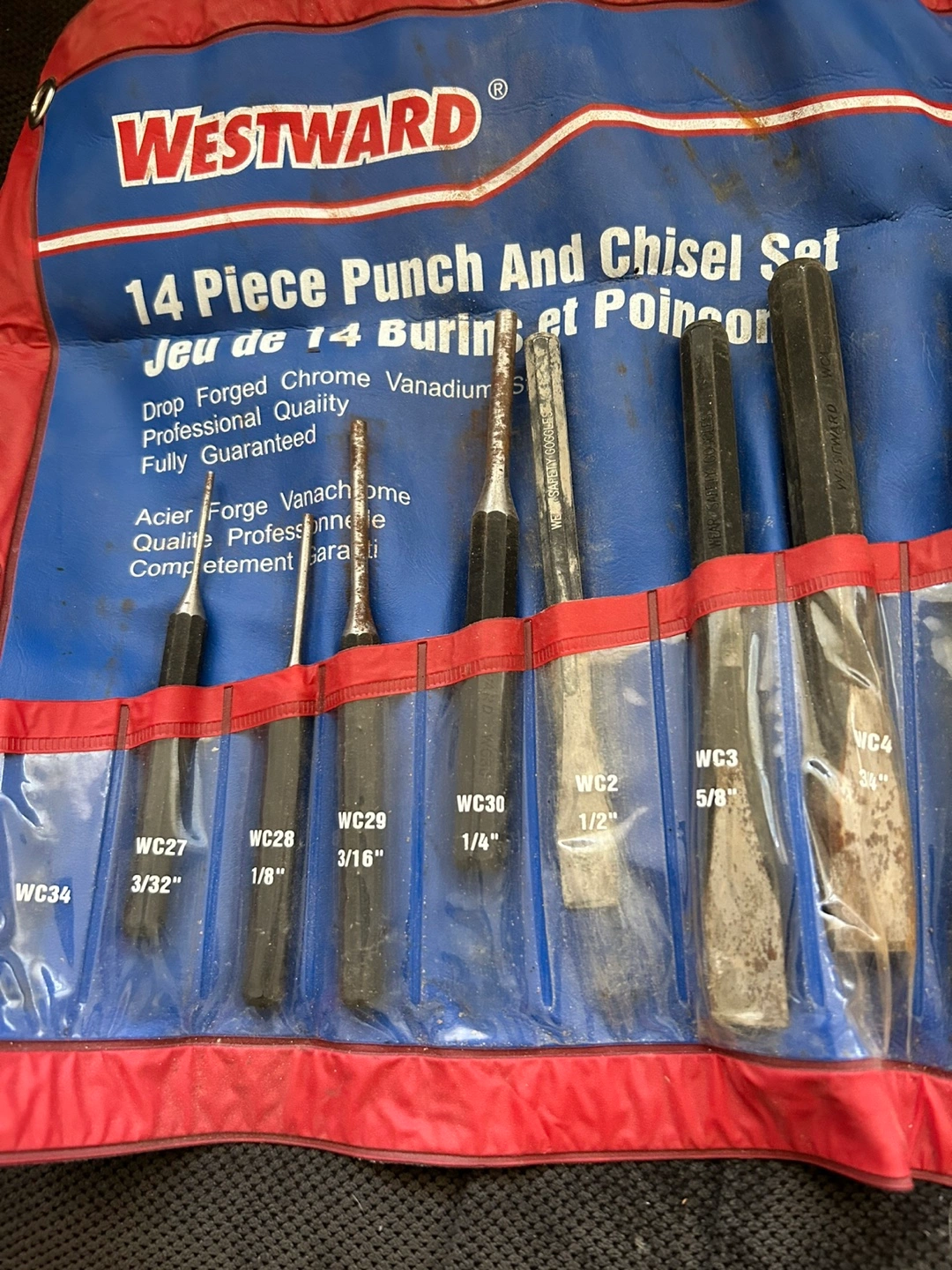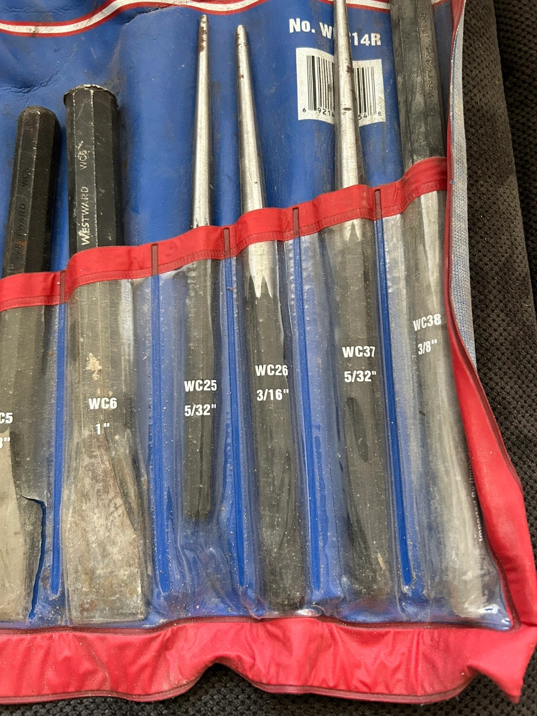 It comes with a variety of punch and chisel tools. The set includes various sizes and types. Keep it on hand for your next project.