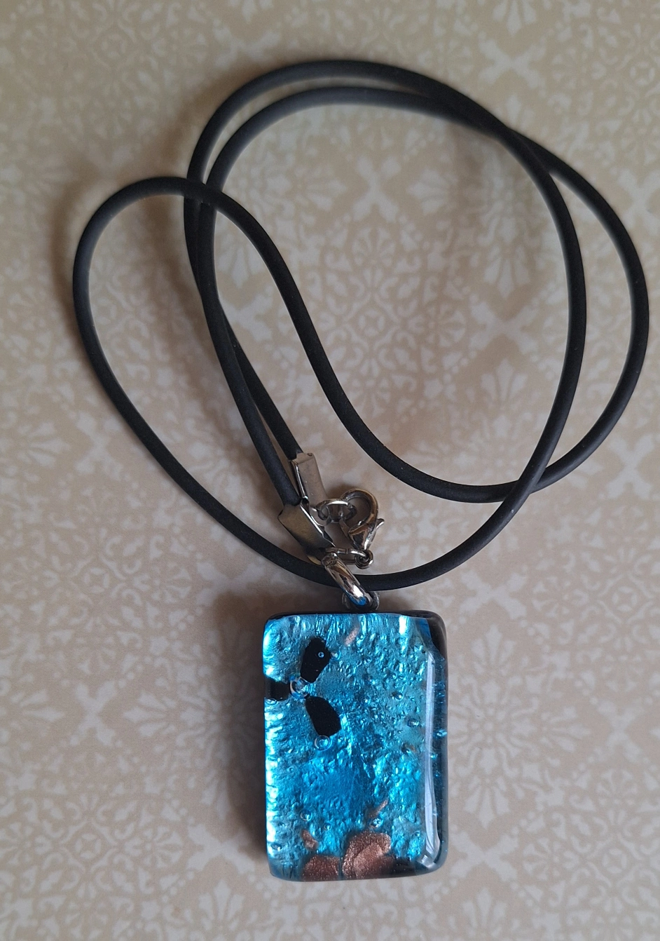 Pendant with a dark-colored glass.