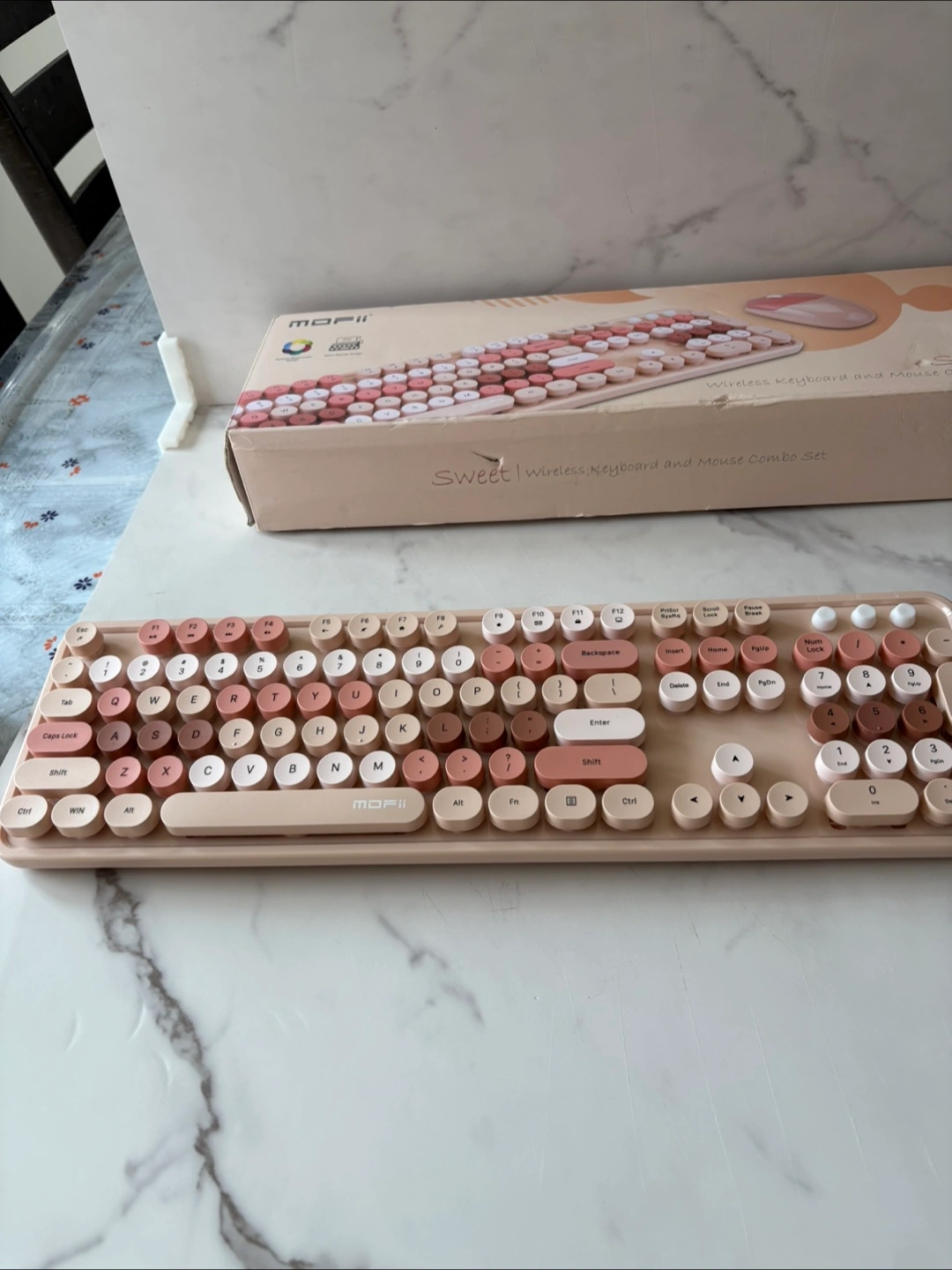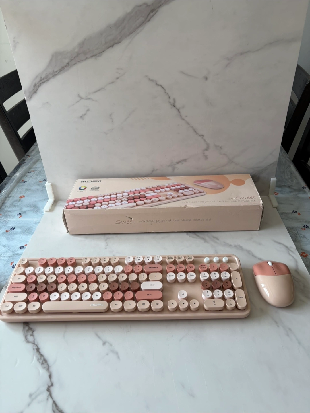 Description (English): Brand new MOFii โSweetโ wireless keyboard and mouse combo ๐น Color: Milk Tea (pastel mixed tones) ๐น Full-size 104-key keyboard ๐น Quiet and retro-style keys ๐น 2.4G wireless connection ๐น Compatible with Windows XP/7/8/10 ๐น Powered by 2 AA batteries ๐น Batteries not included ๐ธ As shown in the video and pictures ๐ฌ Price is firm โ no negotiations