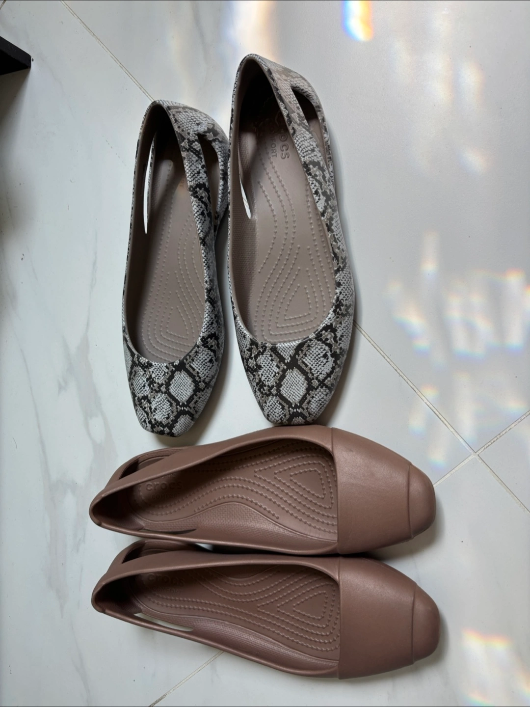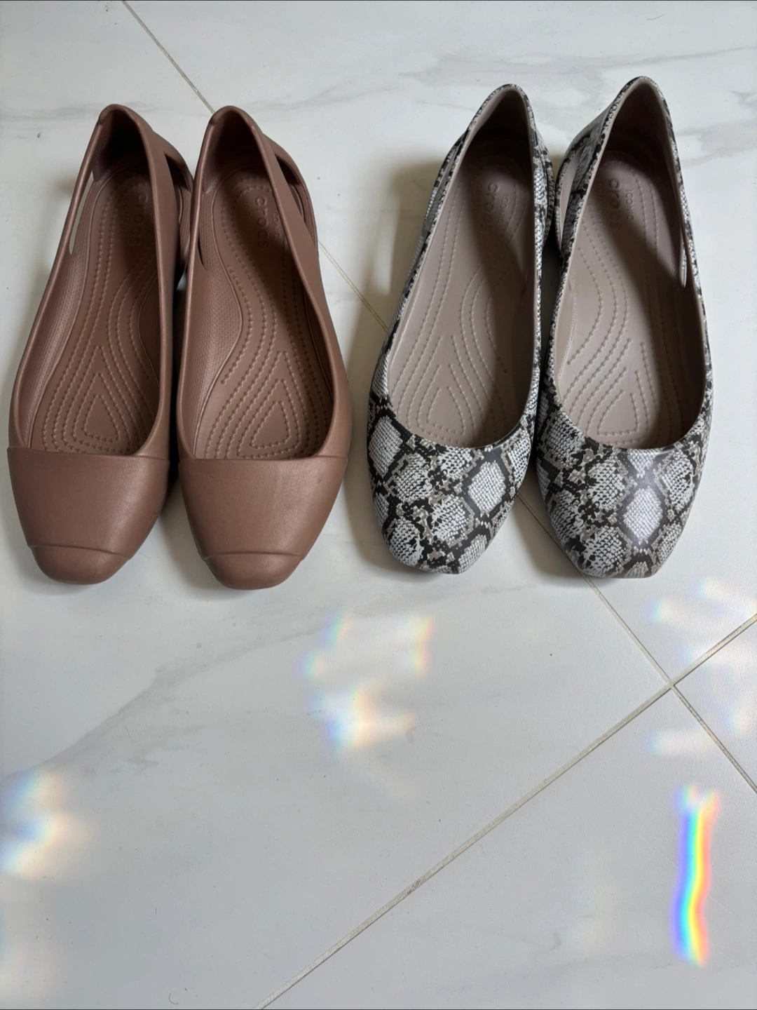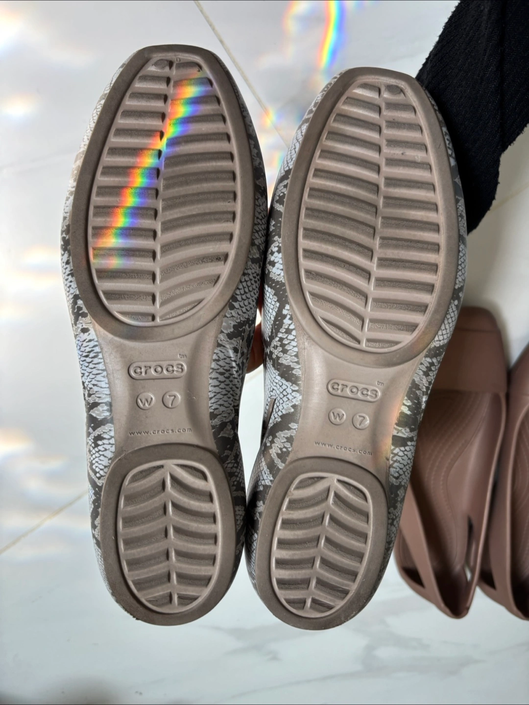 Smoke free pet free home Pick up only. Yonge & Steeles Item brought to driveway Elegant yet comfy Crocs, pairs well with dresses and shorts. Both pairs size 7 Leopard print one barely worn Selling as lot total $30 for 2 pairs.