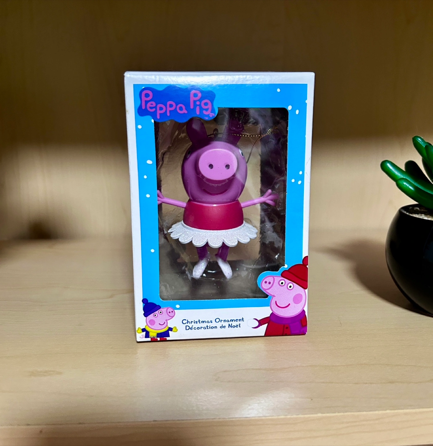 A new Christmas ornament. Features Peppa Pig in a ballerina outfit. A perfect addition to any Christmas tree, bringing a little bit of joy to your home.
