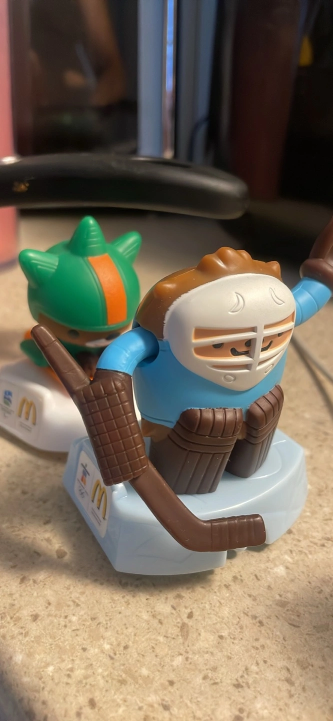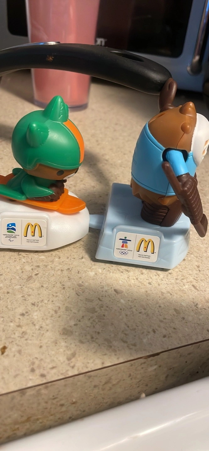 A set of two figurines. They appear to be characters that participated in the Winter Olympics. These toys will bring back sweet memories of your childhood.