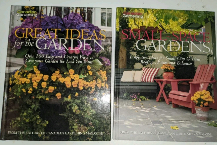 Two gardening books. Feature images of plants and gardens. Great for inspiration and helpful ideas for your garden.