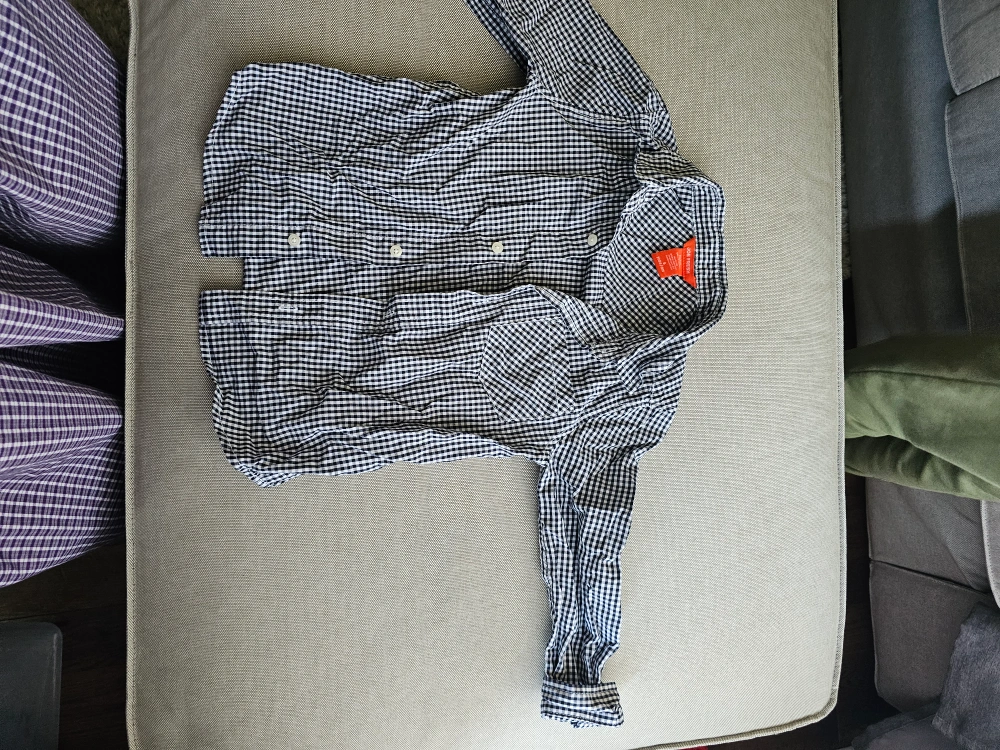 Button-up shirt in a checkered print. Long sleeves and a collared neckline. Can be worn by children. A perfect shirt for a nice day at the park, so imagine yourself in it.