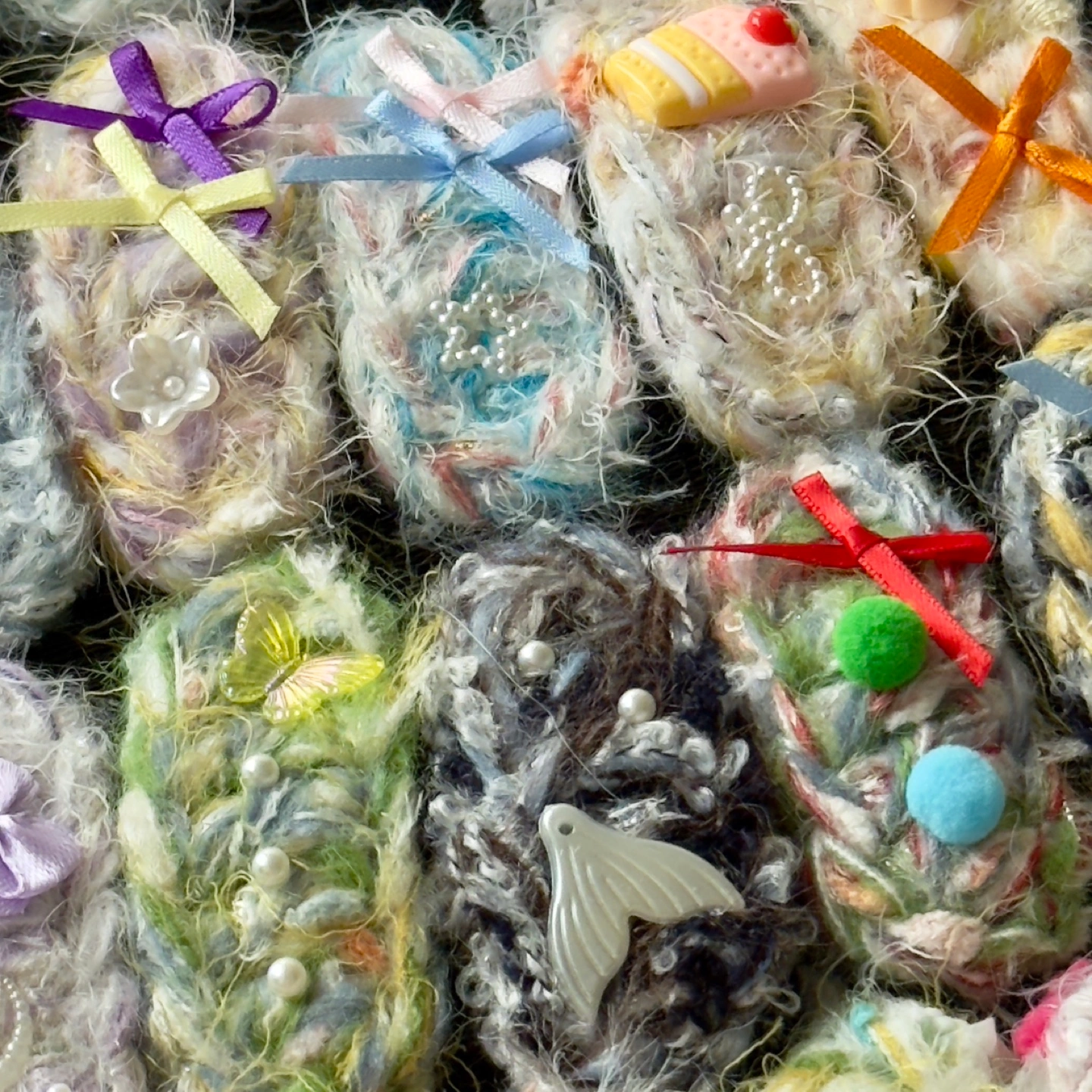 ✨ Handmade Crochet Hair Clips – Colorful, Cute & One-of-a-Kind ✨ Add a playful pop to your look with these handcrafted crochet hair clips! Each clip is lovingly made with soft, textured yarn and adorned with unique ribbons, charms, or embellishments – no two are exactly alike. Lightweight and comfortable, they’re perfect for kids, teens, and adults who love fun and creative accessories. 🎀 Sold as a set of 2 hair clips. Due to the handmade nature of each item, clips in the same color may vary slightly in texture and embellishment, making every set truly unique. 💌 If you have a preferred color or style, feel free to leave a note at checkout – we’ll do our best to match your request! 🌟 Great for: • Everyday wear • Gifting (birthdays, holidays, stocking stuffers) • Photoshoots or special occasions • Adding a handmade touch to your outfit Choose your favorite colors or collect a few to mix and match. Every piece is made with care and a love for detail – a perfect blend of cozy and cute! 🧶 Handmade with love, from our studio to you.