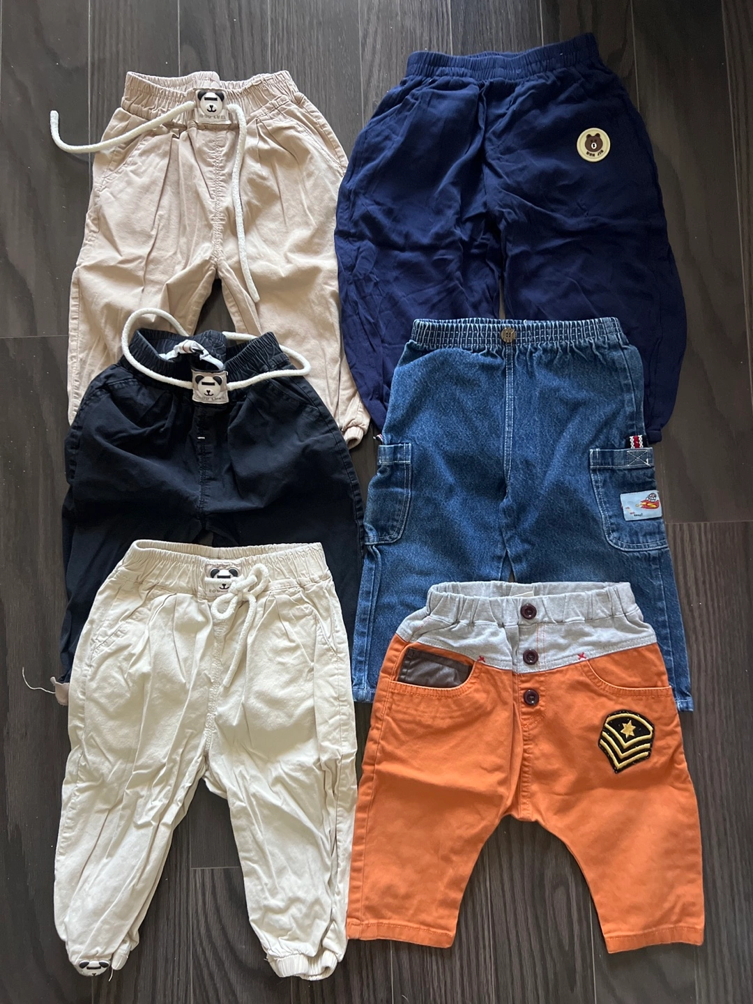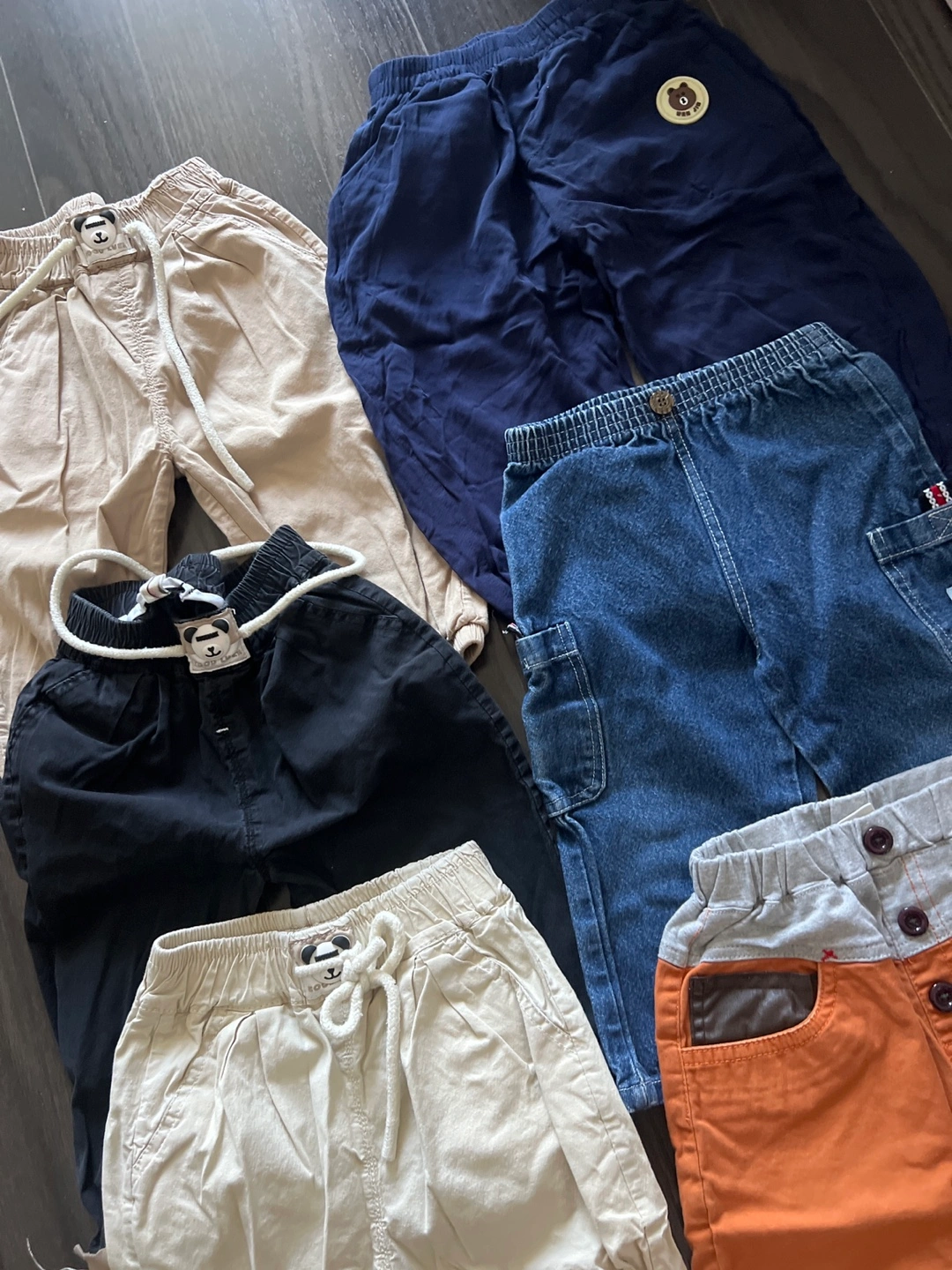 A lovely assortment of colourful pants. Various neutral and bright colours are available. Some pants feature elastic waistbands and drawstrings. Perfect for any little one's wardrobe to feel comfy and cozy.