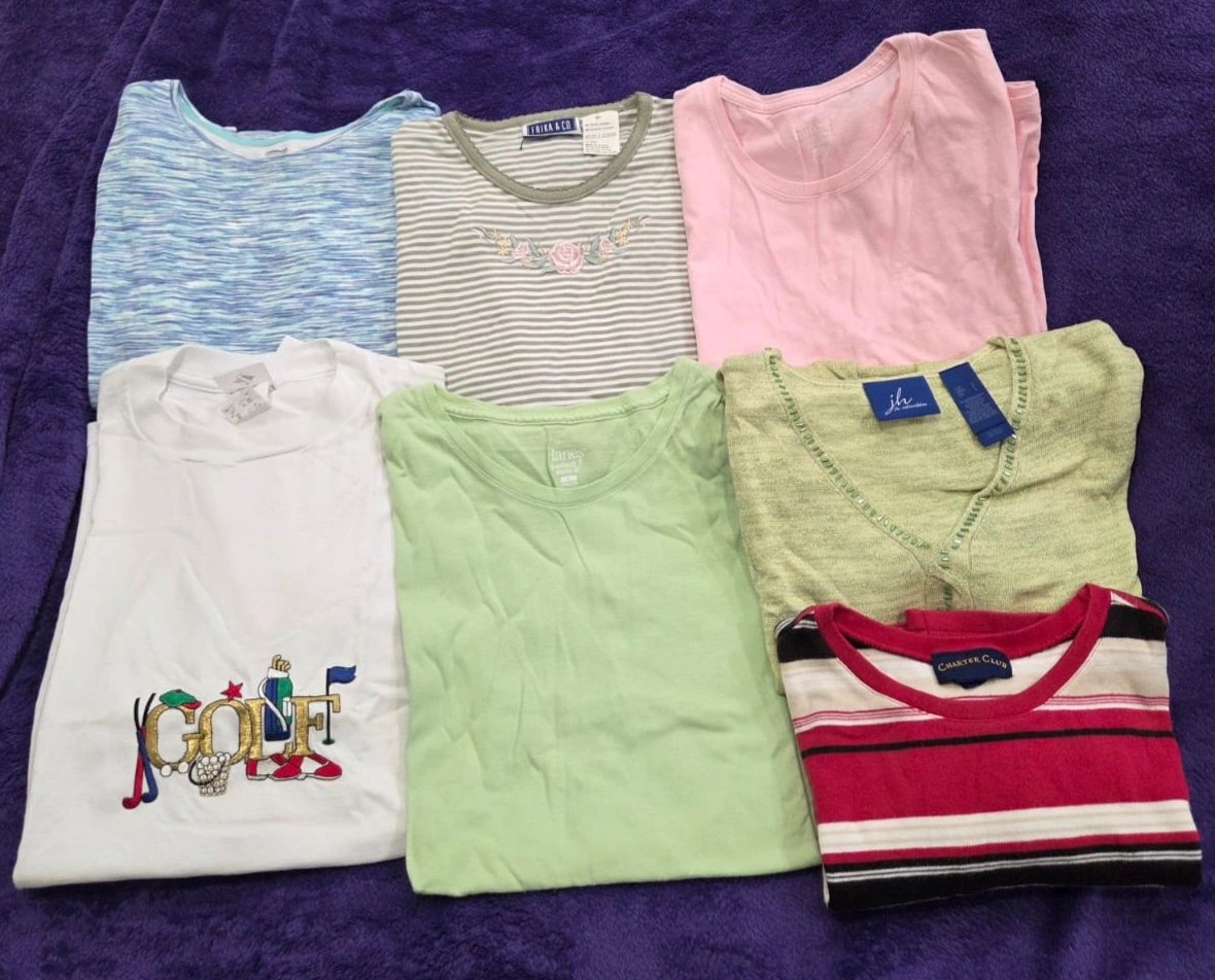 $2 Each 3 Pcs for $5 Offering a bundle of various t-shirts in different colours and styles. Some shirts have simple designs. Perfect for everyday wear, allowing you to build a stylish collection without the fuss.