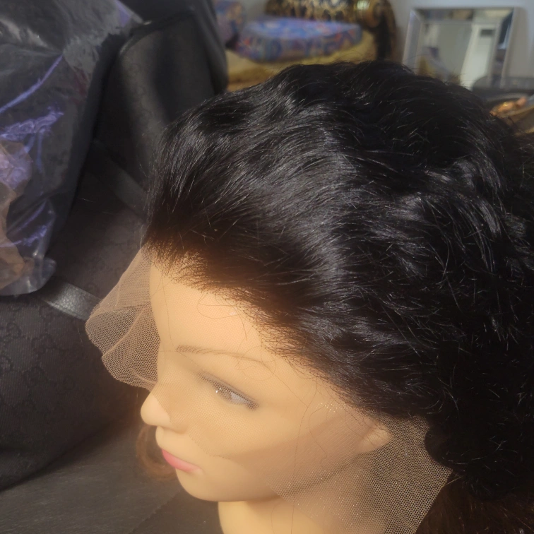 The wig features dark hair with a lace front. Appears to be in great condition. This wig would be perfect for special occasions.