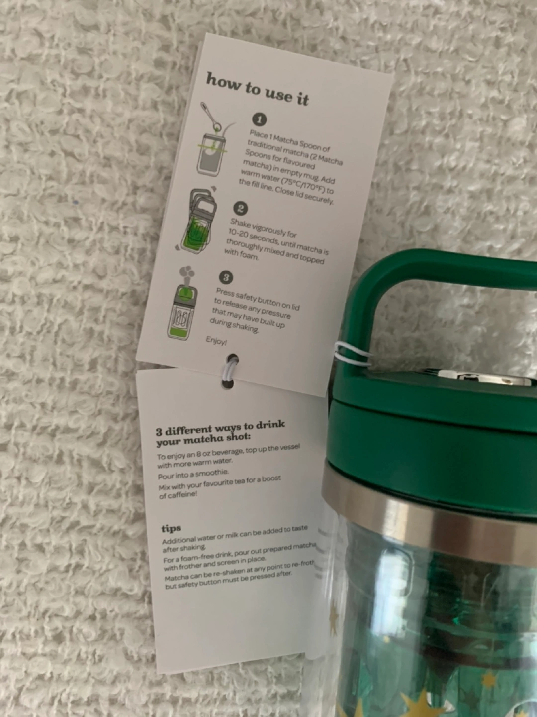 A charming matcha shaker with a green handle. Made from clear plastic and stainless steel detailing. 8oz or 237ml Pick up near Spadina Ave & Front St W Cash only please!