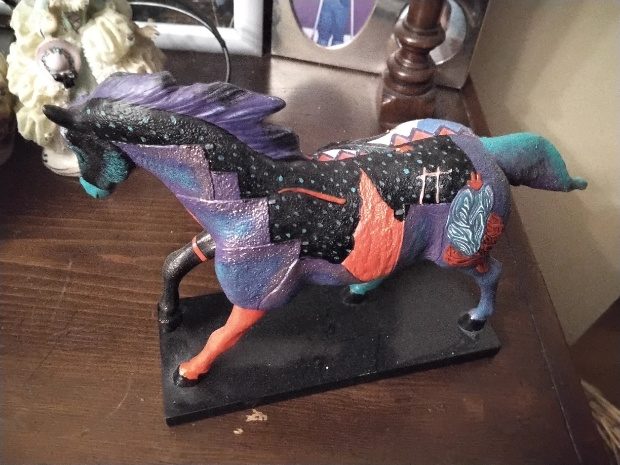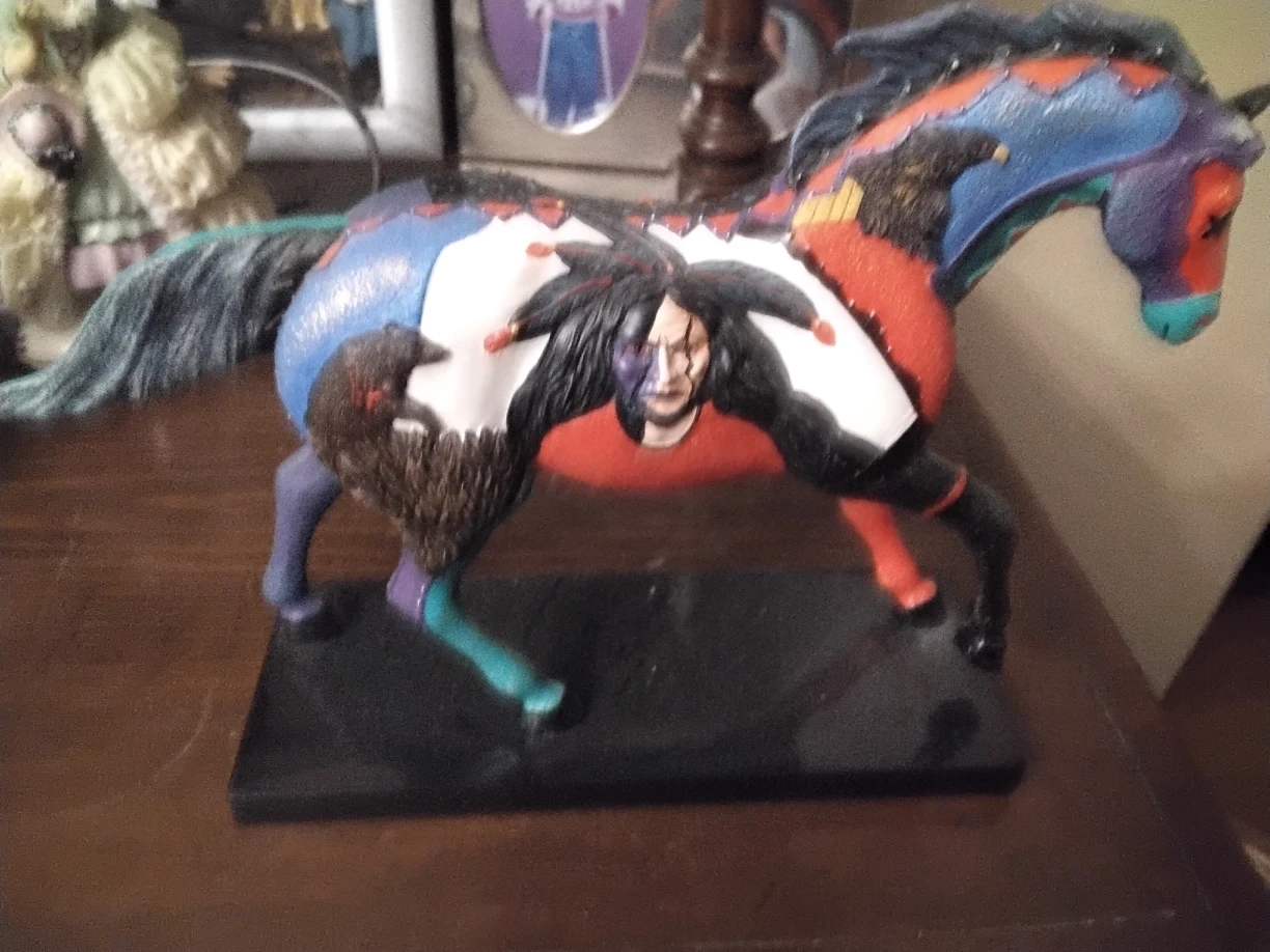 The Trail of Painted Ponies LTD. Ed. Earth , Wind and Fire Figurine 3rd Edition Number 0684, by Artist Bill Rabbit year 2004 Excellent Condition. Asking $75.00 Pony Story: Read this Cherokee artist's resume and you will understand why he is listed in Who's Who in American Art. A Vietnam veteran whose personal philosophy is "Everything is an experiment. That goes for life, for art and for painting a Pony," Bill adorned one side of his Pony with a portrait of a Plains Indian warrior, and the other with a serene Pueblo scene. Asked for his inspiration for Earth, Wind, Fire, he wrote, "From the Great Spirit and Mother Earth, All things are made Please Pickup Clarkson Area Mississauga Via Enclosed Porch for Easy Viewing or I offer Delivery Willing to Ship at Buyers Expense Accepting Cash or Etransfer Only Please Please take time to view my other Ads for more Collectibles and China Sets