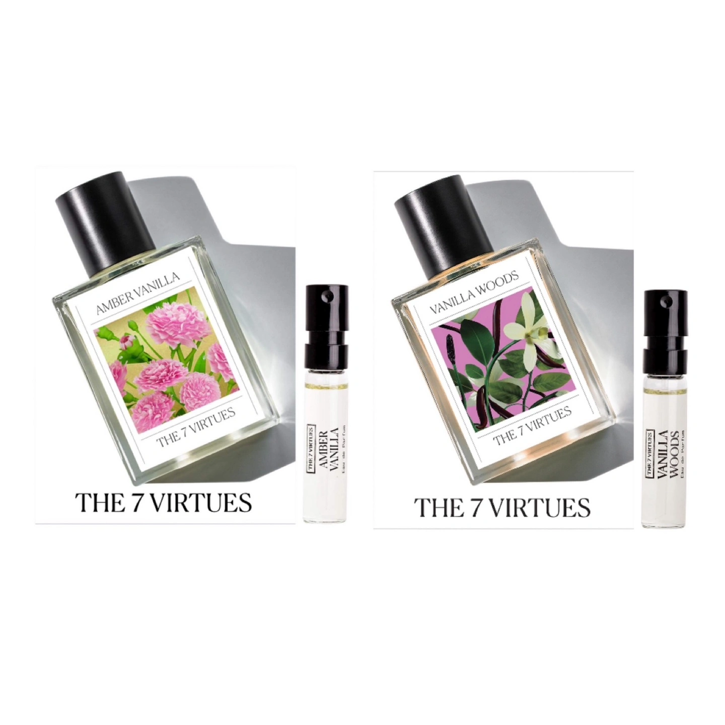 Brand new & unused. Amber Vanilla EDP 1.7ml Fragrance Family: Warm & Spicy Scent Type: Warm & Sheer Key Notes: Amber, Pink Carnation, Vanilla Vanilla Woods EDP 1.7ml Fragrance Family: Warm & Spicy Scent Type: Warm & Sweet Gourmands Key Notes: Pear, Rose, Vanilla