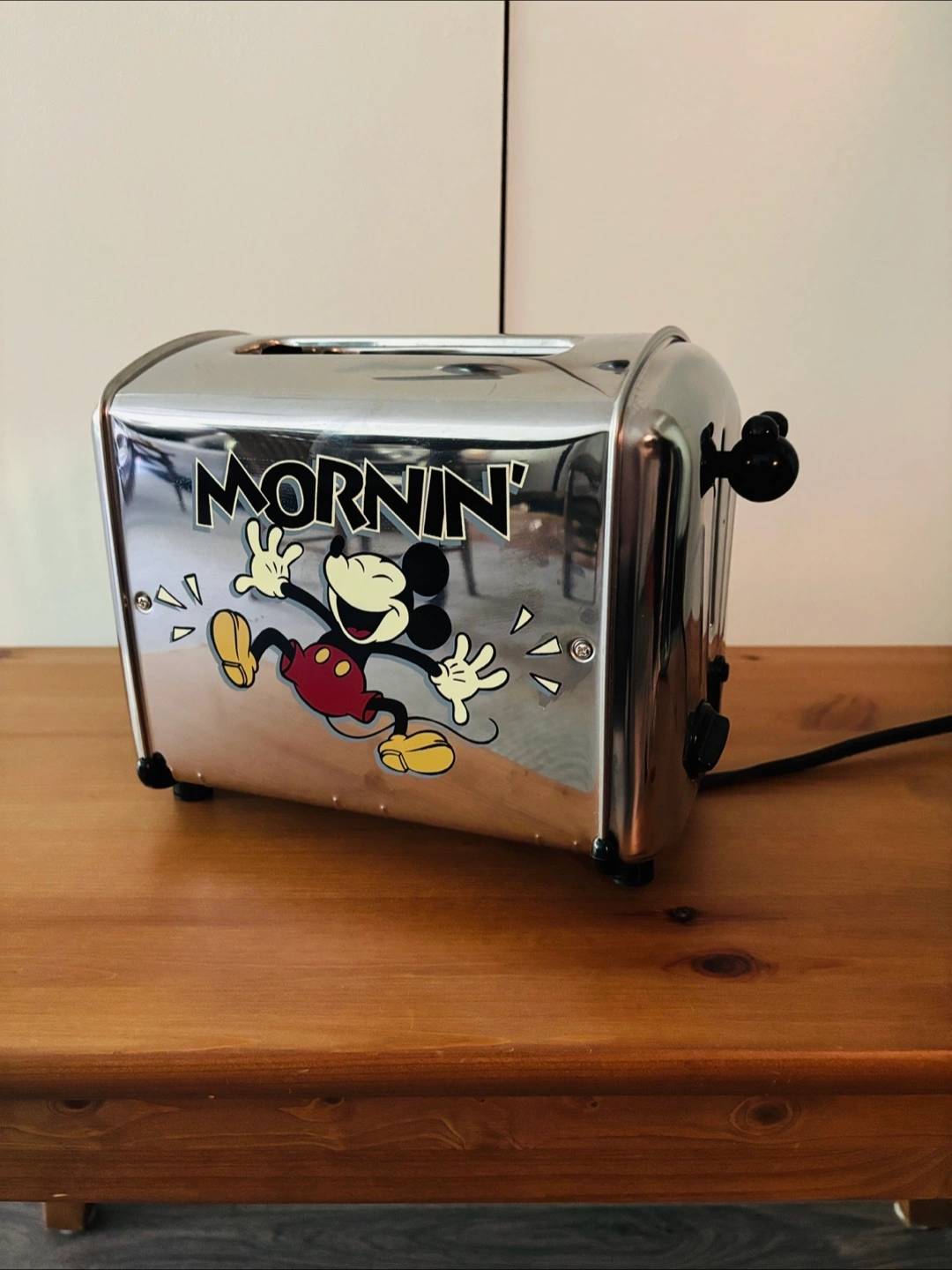 Amazing chrome toaster that plays music, and makes toast with Mickeyβs face on it! Two-slice capacity with Mickey Mouse details all over it. Perfect for making breakfast feel magical. Vintage but unused. Great gift!