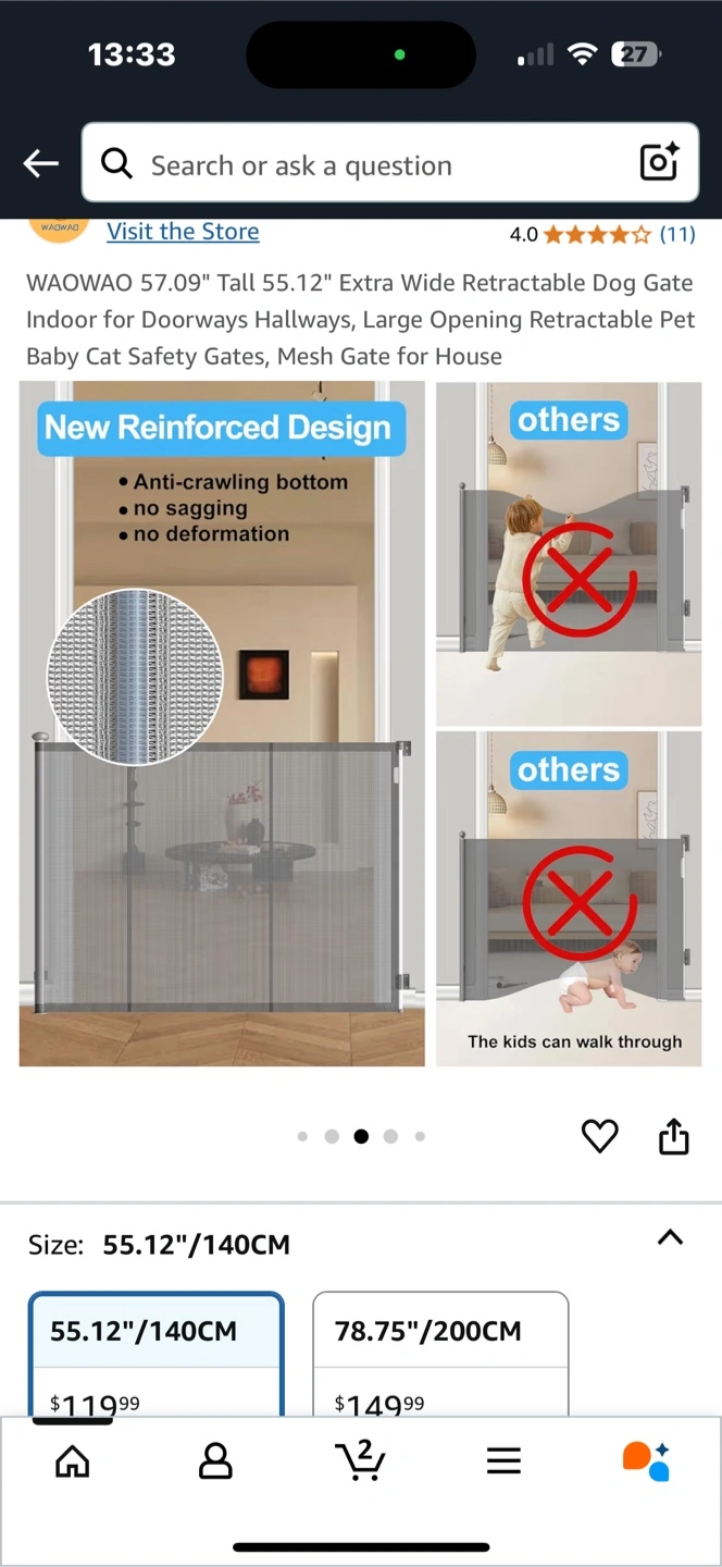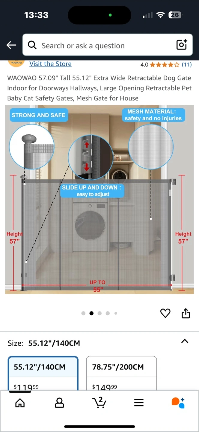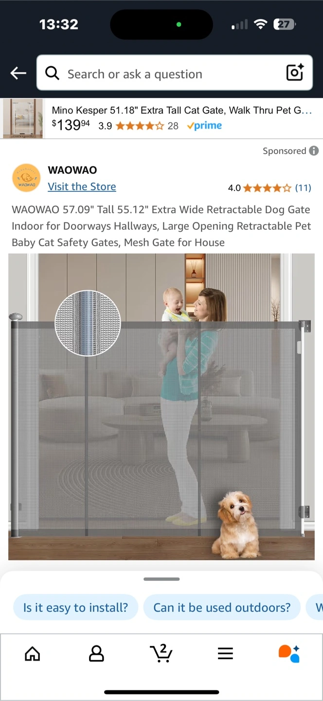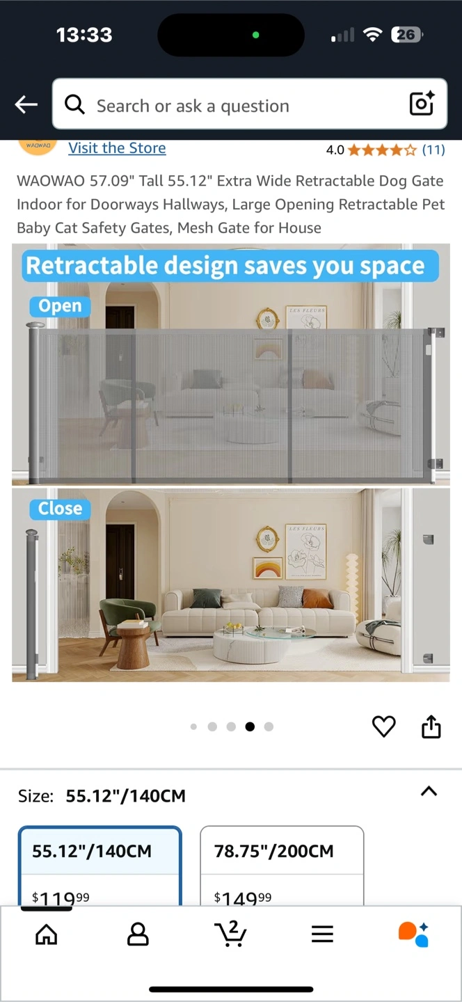 A safety gate for doorways, hallways, or stairs. It is extra wide and retractable. Such a perfect addition to the home, for peace of mind.