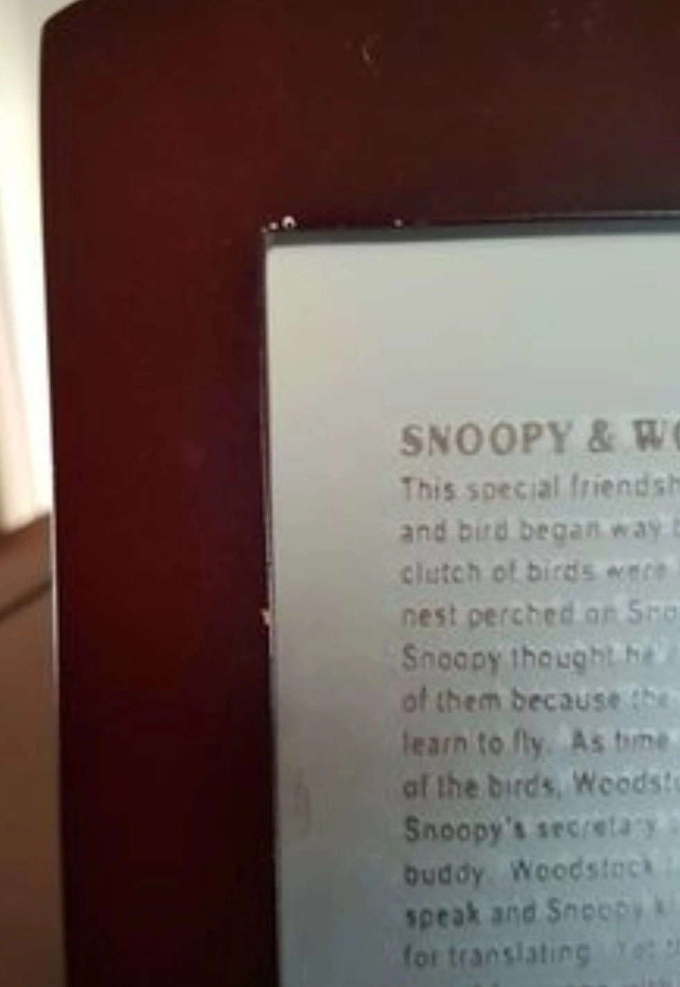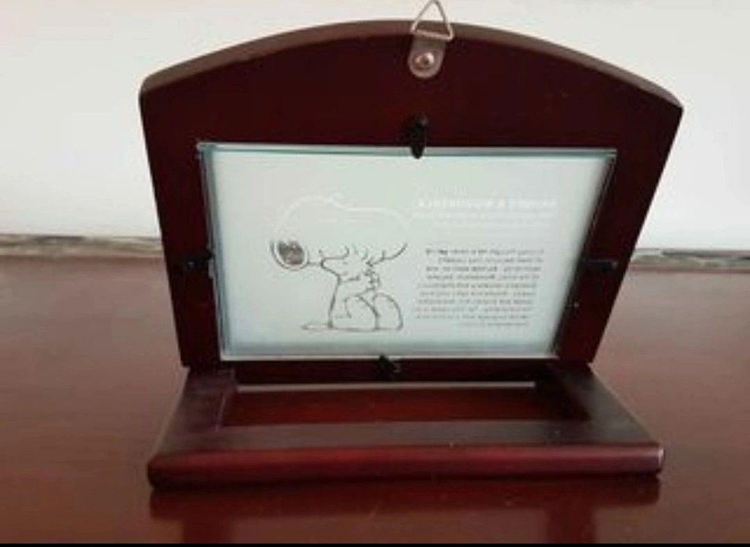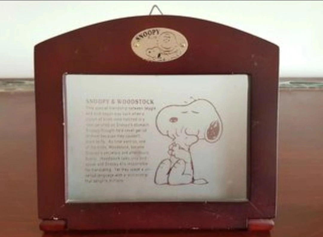 Snoopy picture frame. There are some spots where the paint is peeling.