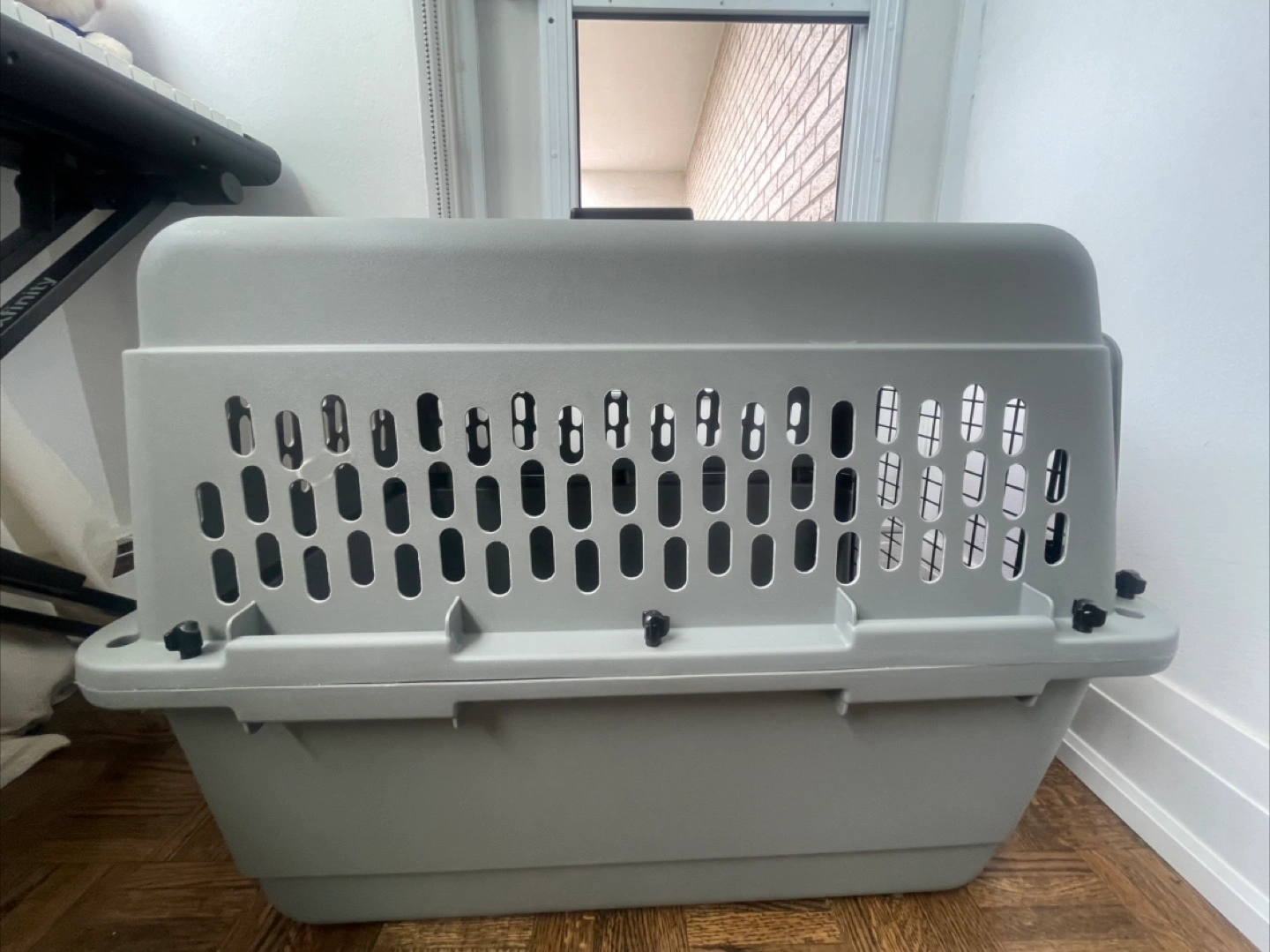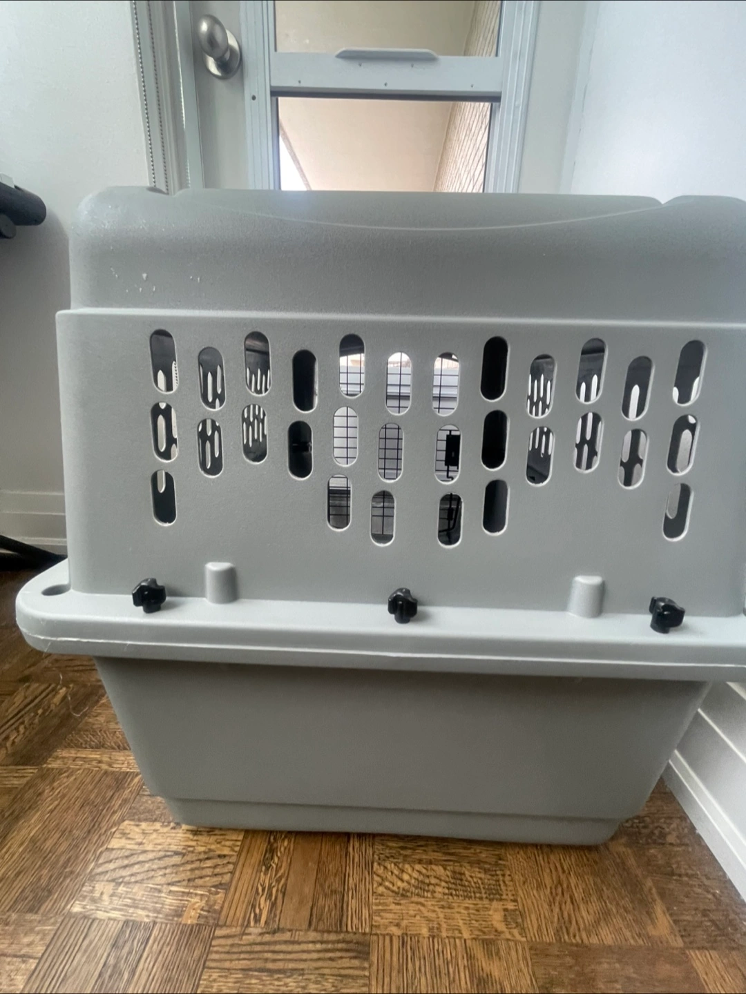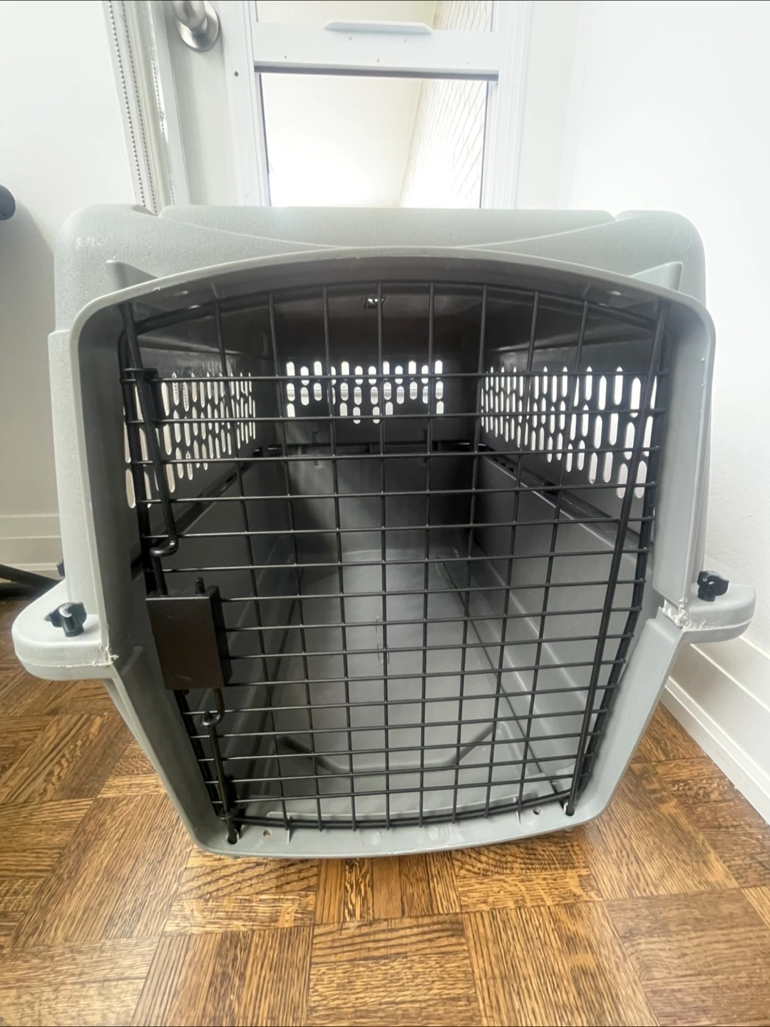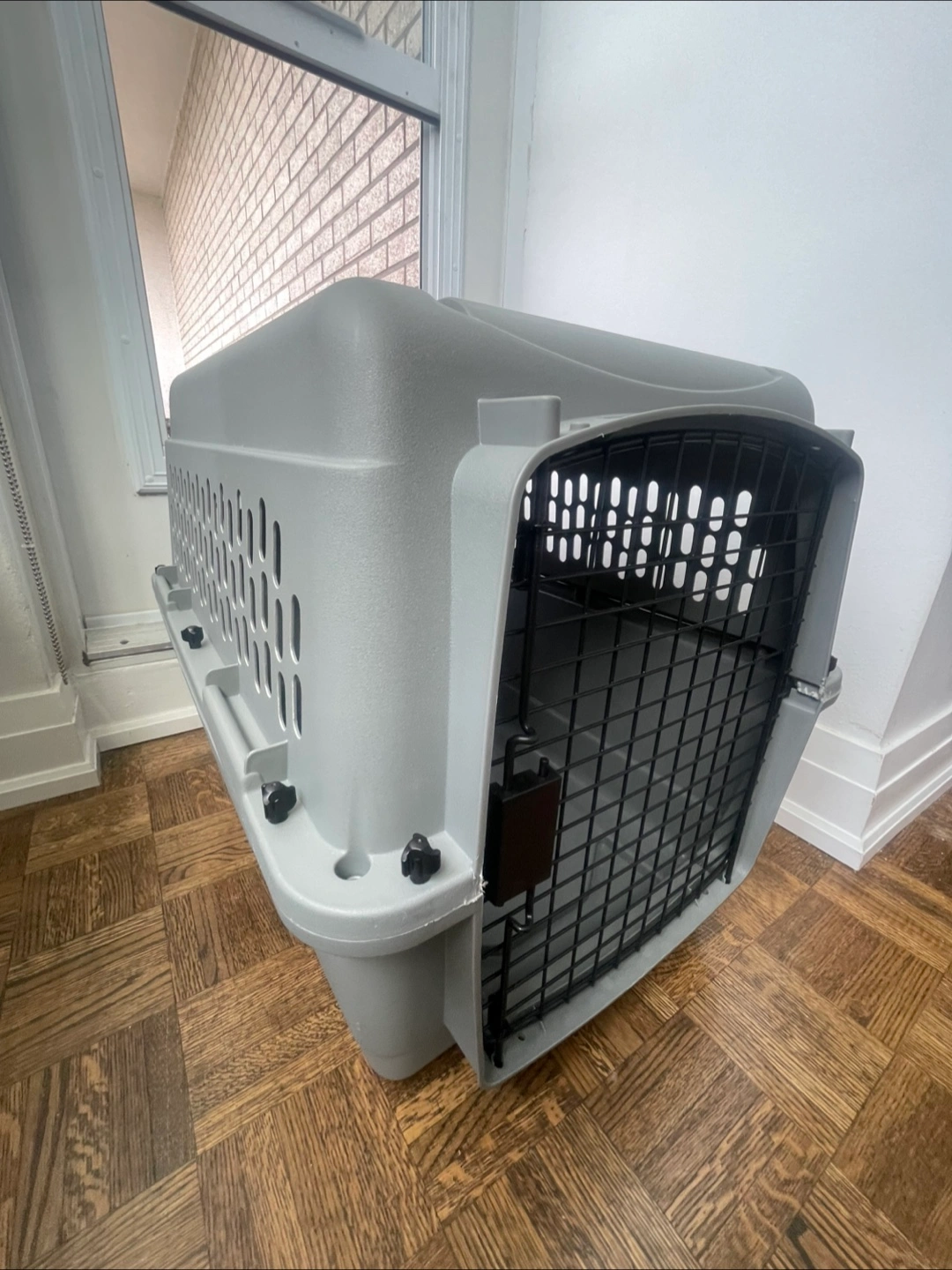 Small 21”x 16”x 15” Petmate Ultra Vari Kennel is a secure and comfortable travel kennel that keeps your pet safe. The 360-degree ventilation openings give pets fresh air and increased visibility. The wire vents, raised interior, and tie-down holes can withstand the rigors of travel while keeping pets comfortable. The kennel offers heavy-duty protection with its durable plastic shell, metal screws, and covered door posts. The secure latch provides a strong lock for the door while also being easy to open with one hand. The kennel can quickly be assembled with no tools required via metal screws. The environment friendly plastic material is easy to clean and wipe down. The kennel is available in different sizes, ranging from 25-90 pounds, to accommodate a wide range of pets. The travel kennel meets most airline cargo specifications for easy and safe travel, but pet owners should always check with individual airlines