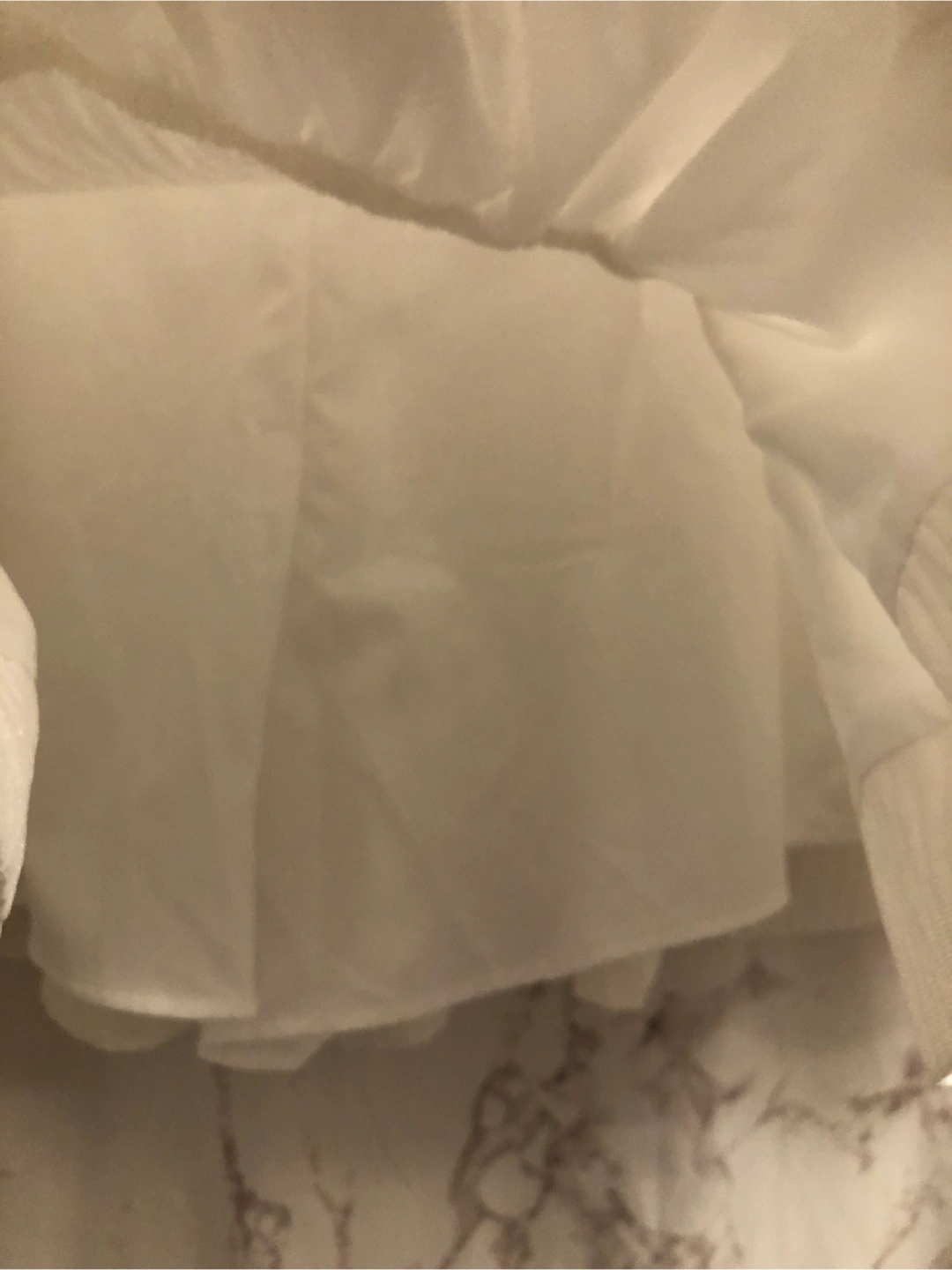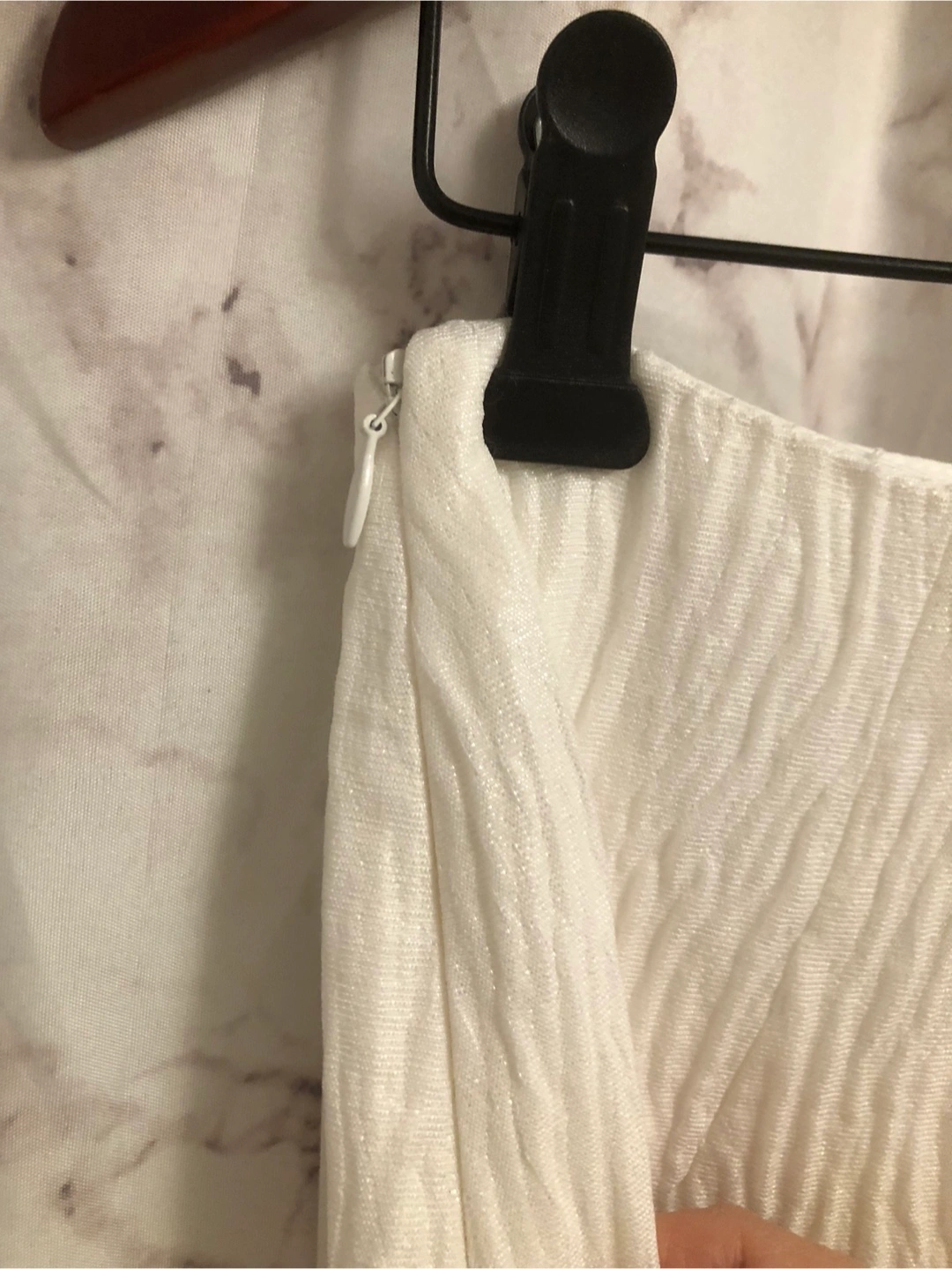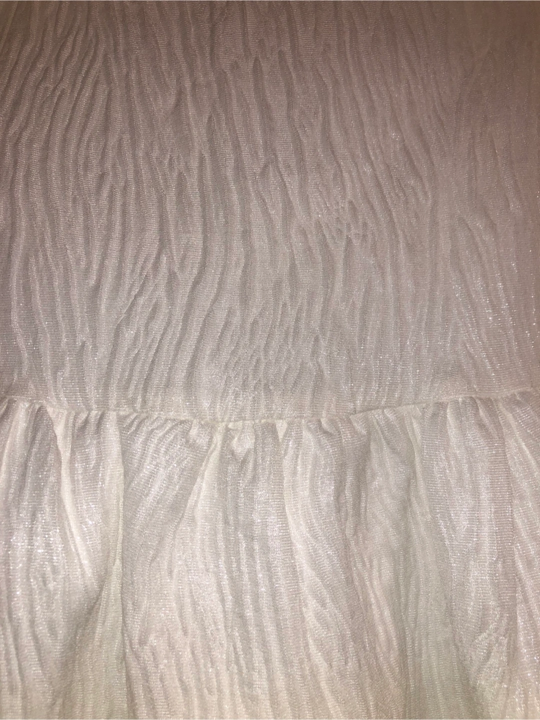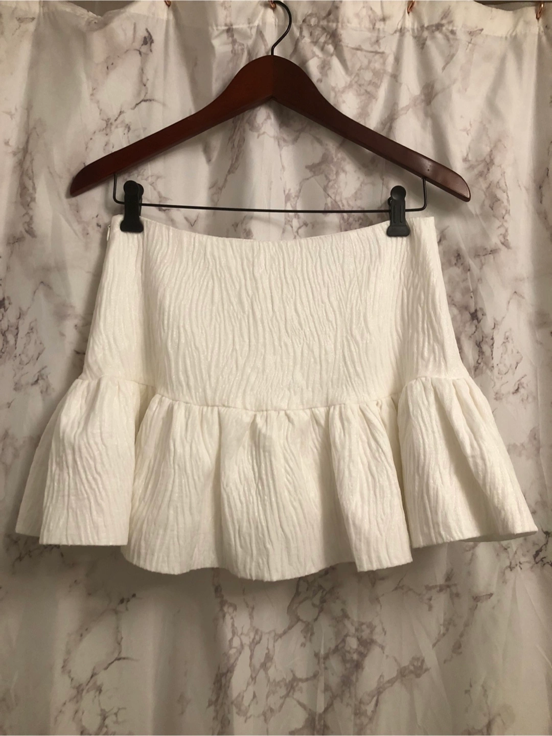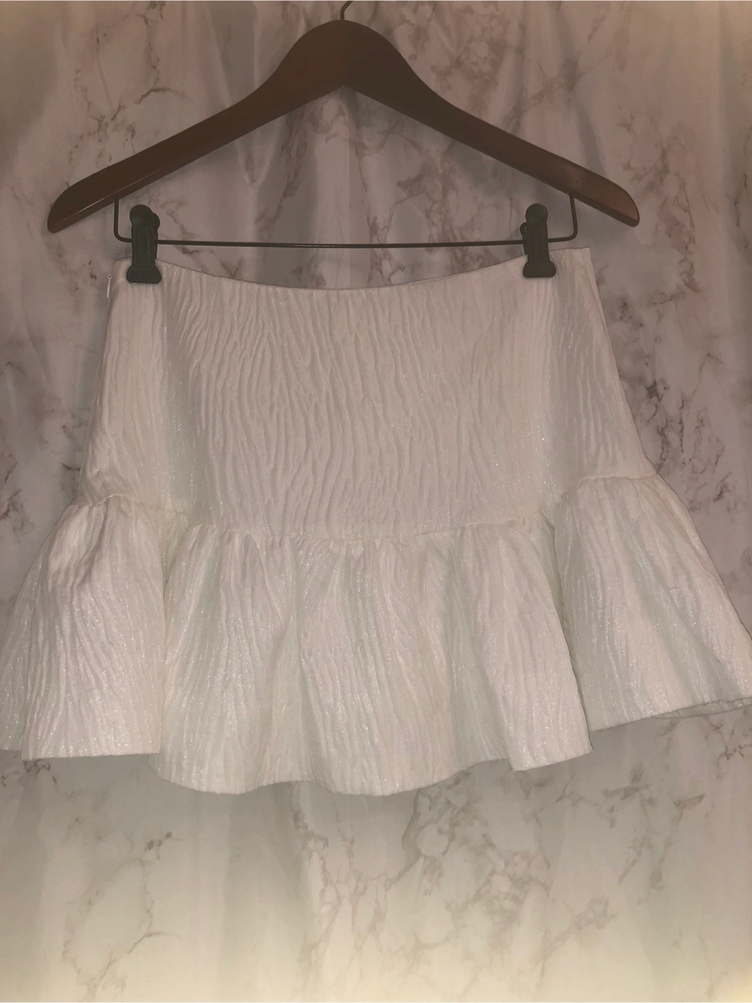 A skirt with a ruffled hem. Features a zipper on the side. Pearly White colour. Soft and comfortable, this skirt is perfect for summer days any day! Small NWOT