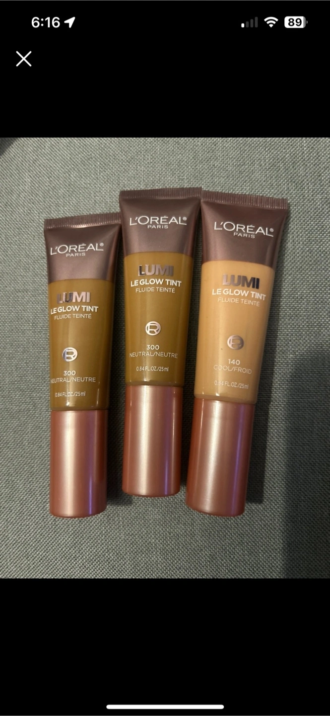 L'Oréal Paris Lumi Le Glow Tints. Shades 300 Neutral/Neutre and 140 Cool/Froid. 0.84 fl oz/25 ml tubes. Brand new Asking 10$ each Selling for 20 plus tax in stores