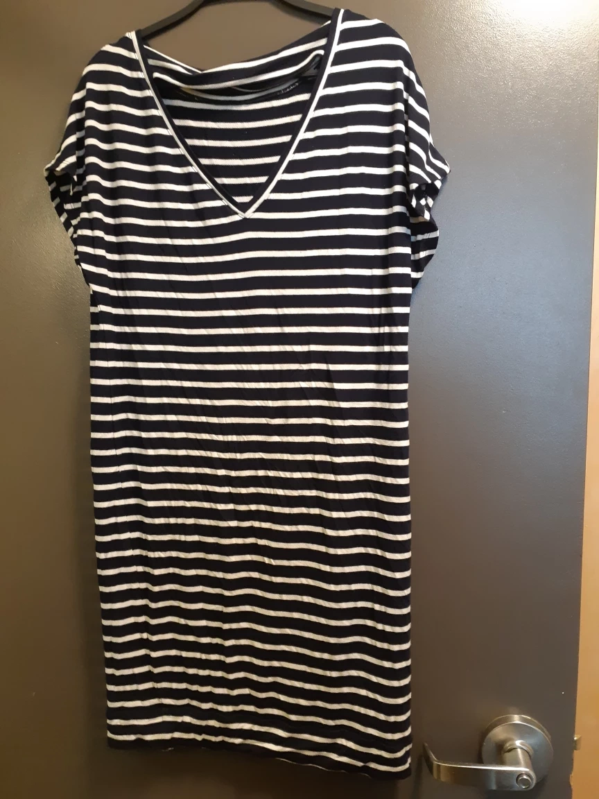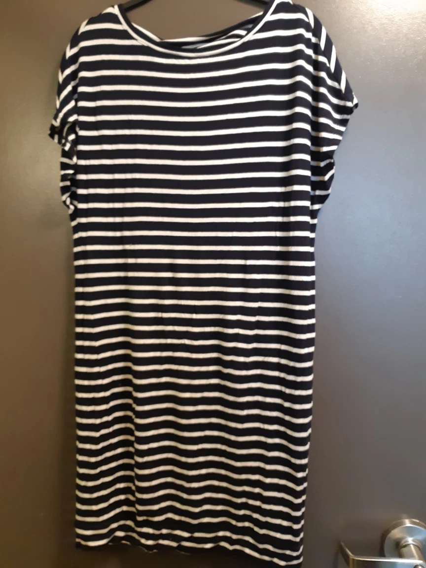 Gap navy blue and white nautical striped cut-out design dress (size small, could fit medium or large) for sale for $15 o.b.o.! Good condition, from a cigarette smoke-free home! 6043667153 call or text! Main St./Downtown area pick-up is best!