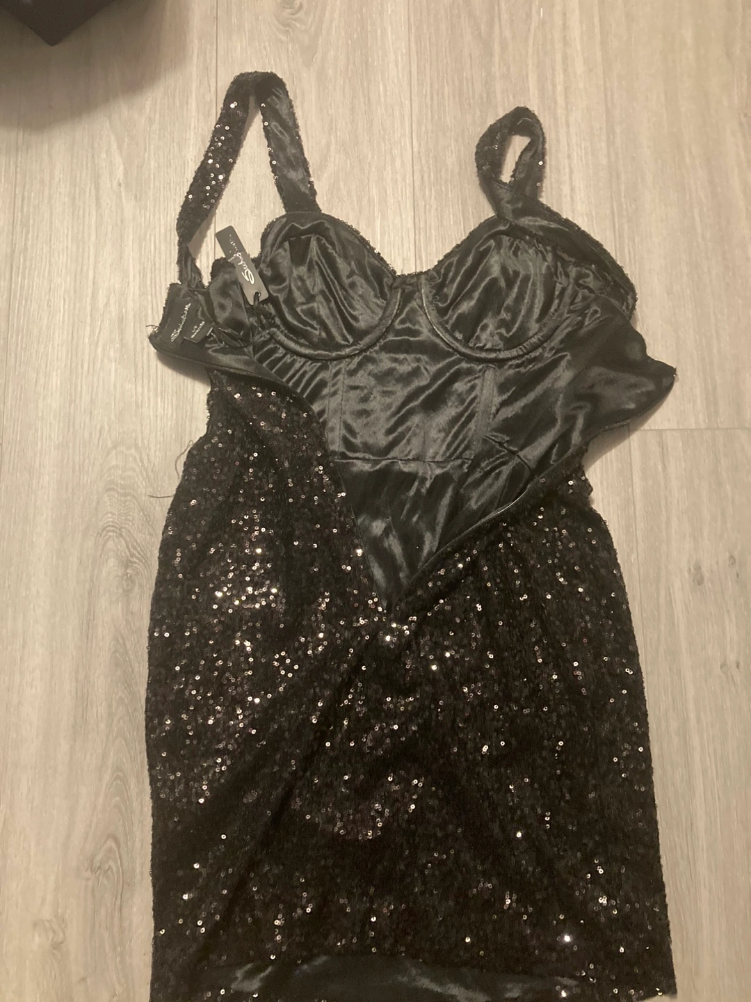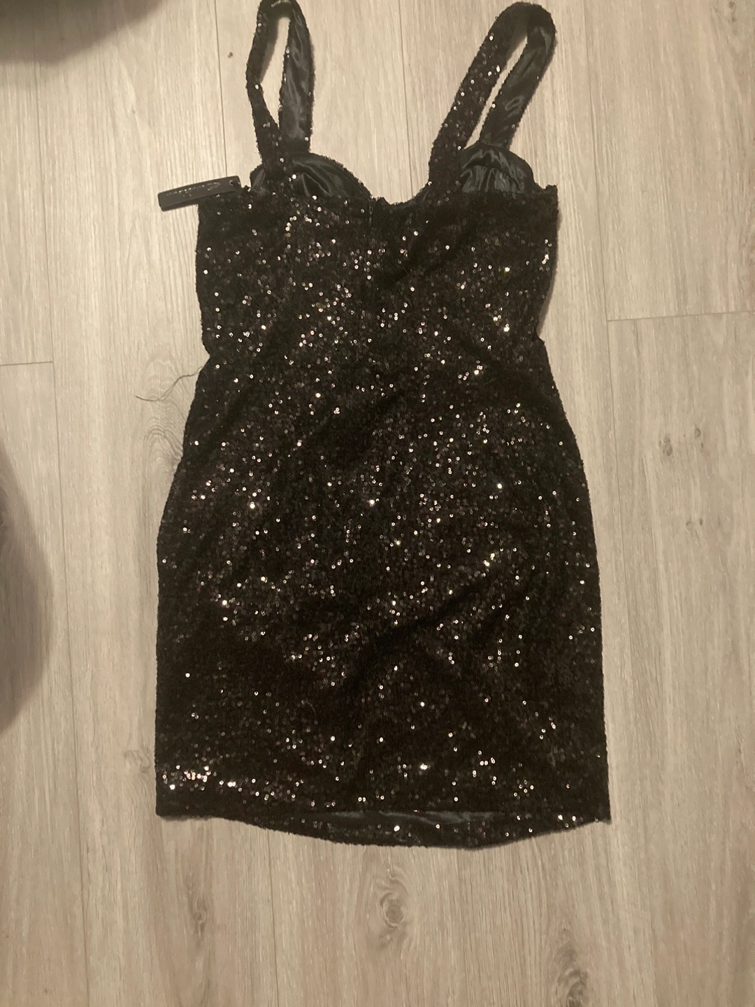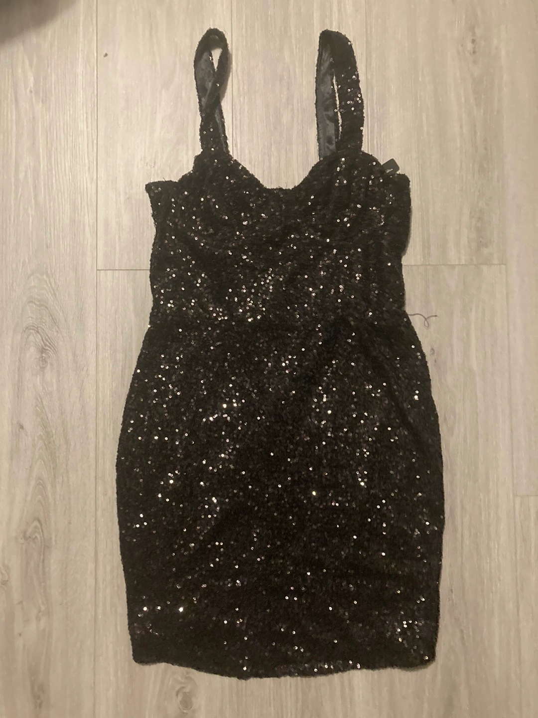 I'm offering this lovely mini dress. The dress is adorned with sequins. It features a sweetheart neckline with thin straps. Consider this dress for your next night out and feel wonderful.