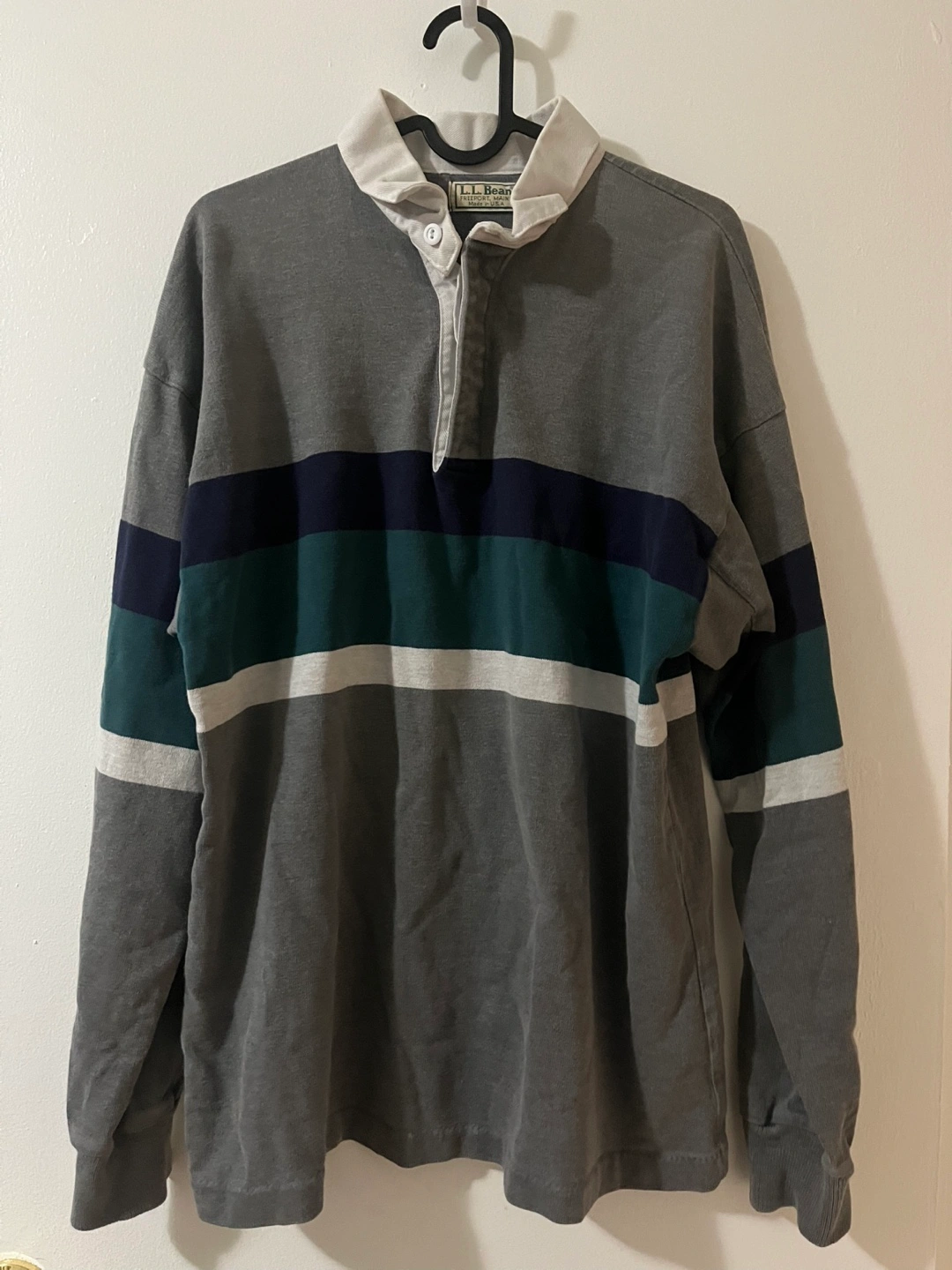 A long-sleeved rugby shirt. Featuring a collar with a buttoned neckline. A striped design across the chest. You will love wearing this cozy shirt while enjoying a quiet evening at home.