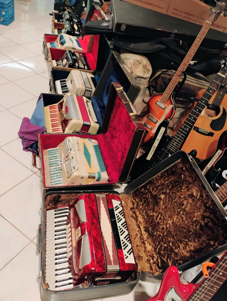 A for sale selection of accordions, guitars, and instrument cases. These musical instruments are ready to play for you. A wonderful way to connect with the creative side of yourself. now all instruments are now at 1/2 price off from original prices!!!