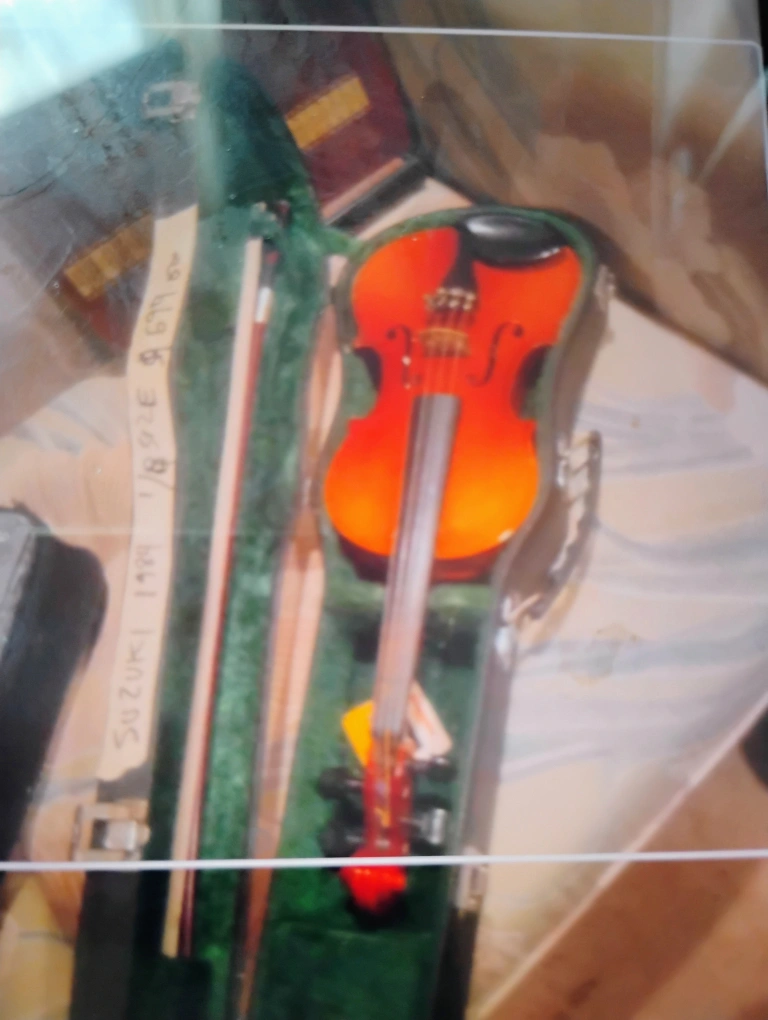 A beautiful, orange-coloured violin, with its included bow. A soft, green lined case is included, offering protective storage. You can play this instrument as a stress reliever at the end of the day.or professionally and as starter violin many sizes available $195.00 and up ! now all instruments are now at 1/2 off original prices!!!
