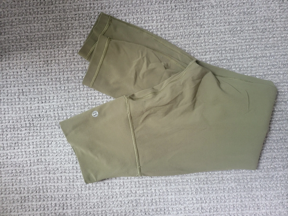 Leggings in a light olive green colour. Featuring a streamlined silhouette and a flattering fit. These leggings are great for any workout, or simply for relaxing in at home.