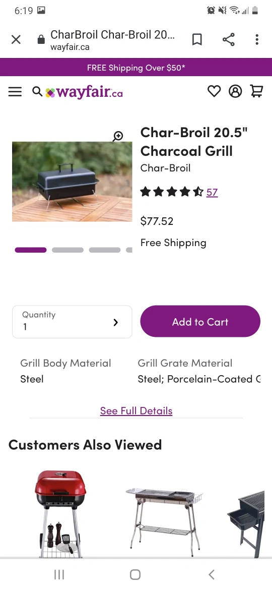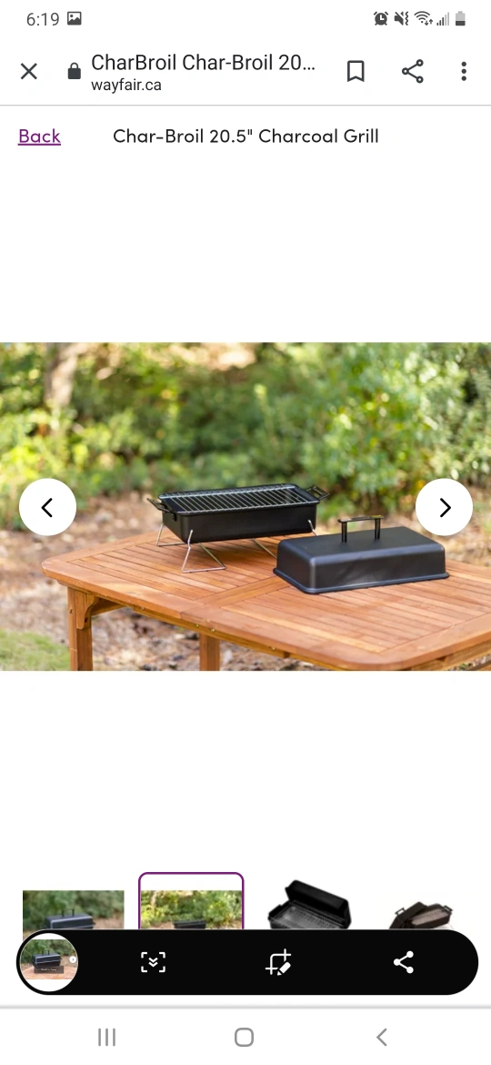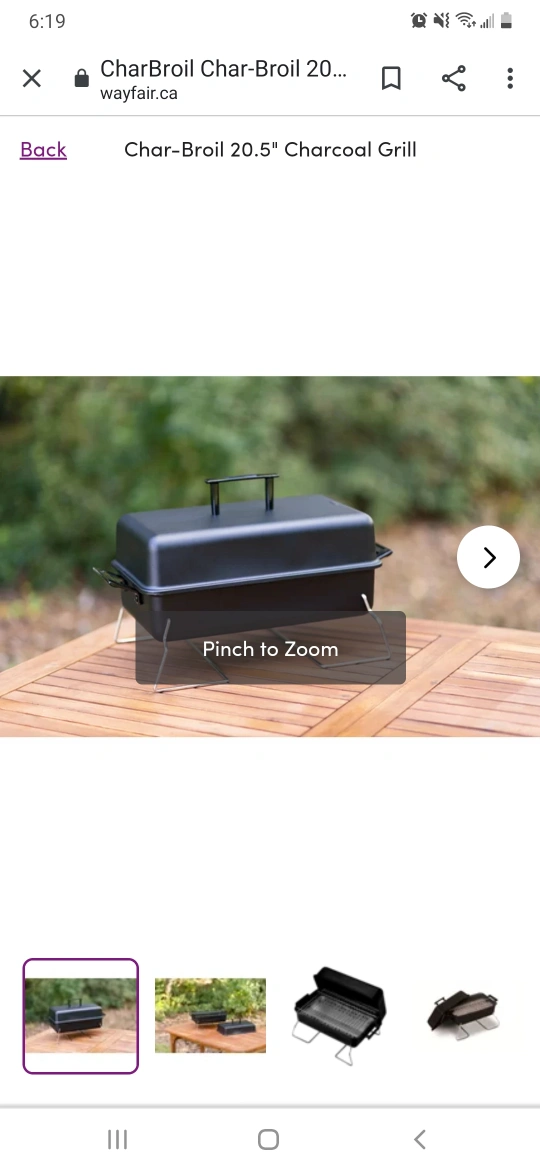 A portable charcoal grill. Features a black exterior. Stainless steel grill grate. It would be a great addition to your backyard for those weekend barbecues.