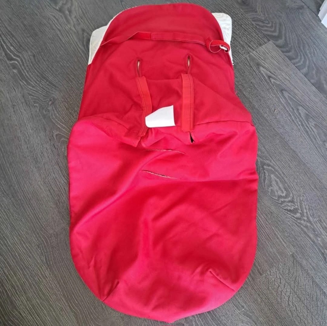 A cozy red and white baby cover perfect for baby car seat. It has a soft, plush inner layer. The cover includes a zipper, and straps. This cover would be perfect for getting a little one out in the snow, all bundled up. Never got to use is in the winter, and seeing it's summer I'm giving it away!