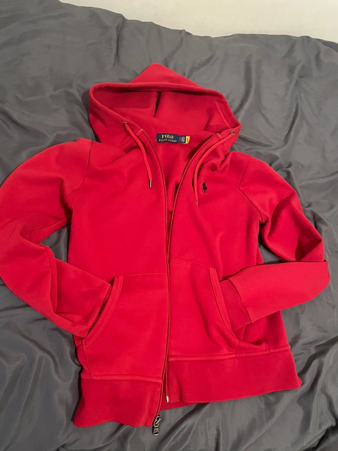 Red Polo Ralph Lauren zip up hoodie for sale in excellent condition.