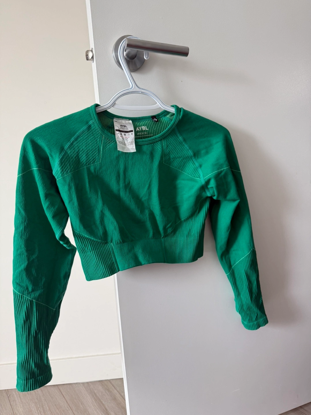 Long sleeve / cropped fit Green and size large Worn once or twice but freshly laundered Also have leggings available if you wanted a set! Pickup e11th and Kingsway $25 OBO
