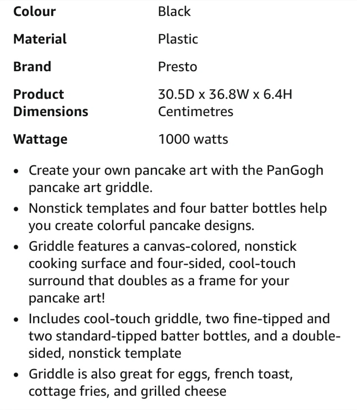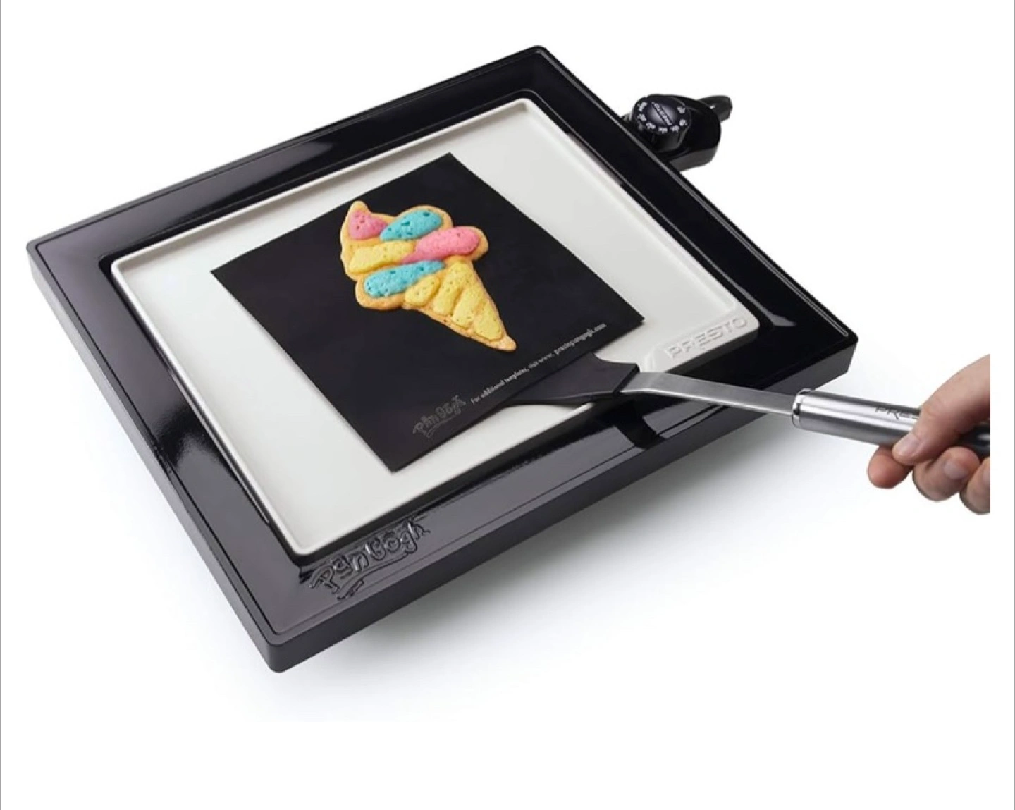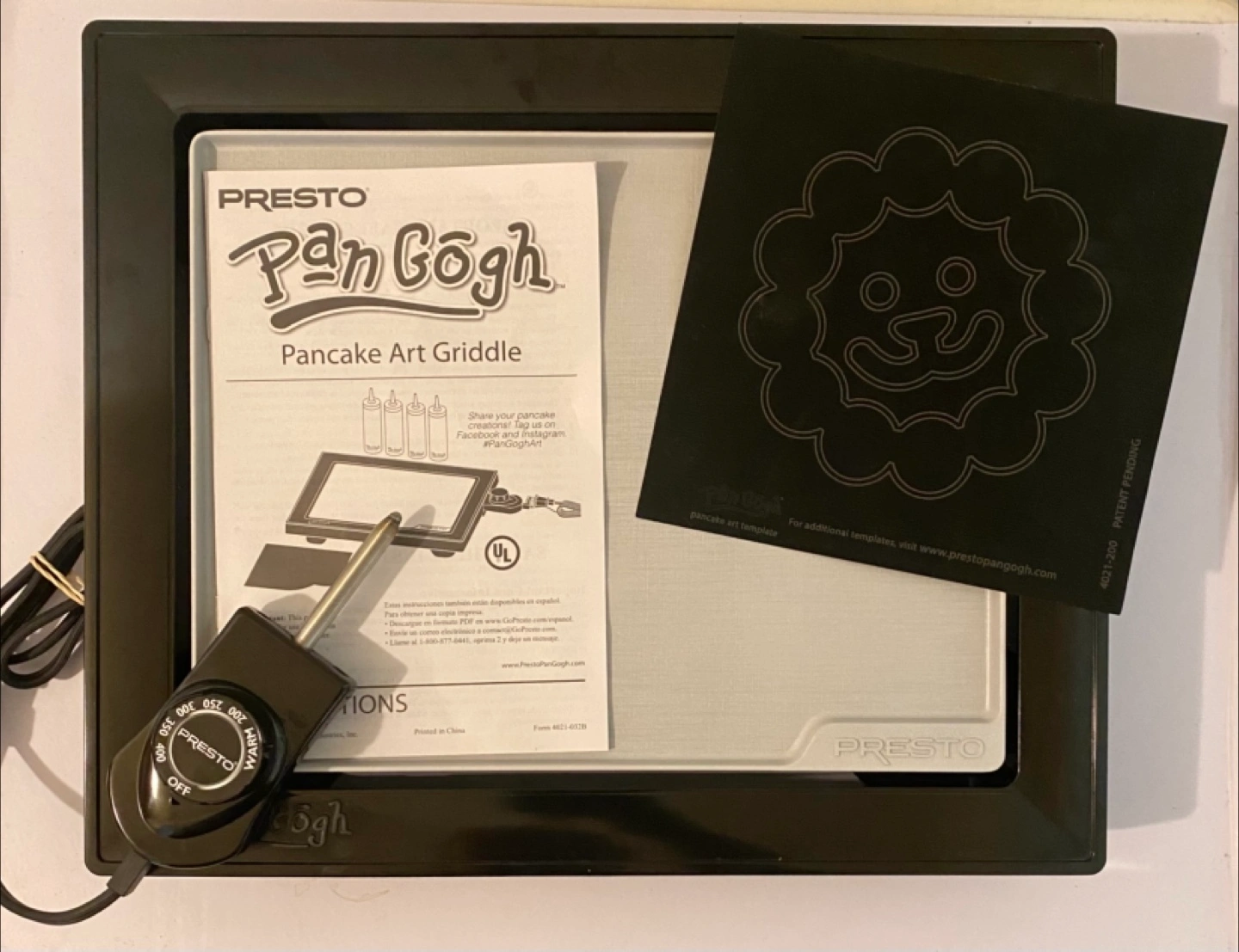Pan Gogh pancake art griddle. It features a non-stick cooking surface, with temperature control and a cool to touch black frame. Comes with a template one side is a lion the other is an ice cone. This griddle is a fun and easy way to make breakfast for the whole family. Not just for pancakes, you can make scrambled eggs and grilled cheese sandwiches. Perfect condition only used once. Pick Up Cash Only Please If It’s Posted & Not Reserved It’s Still Available.