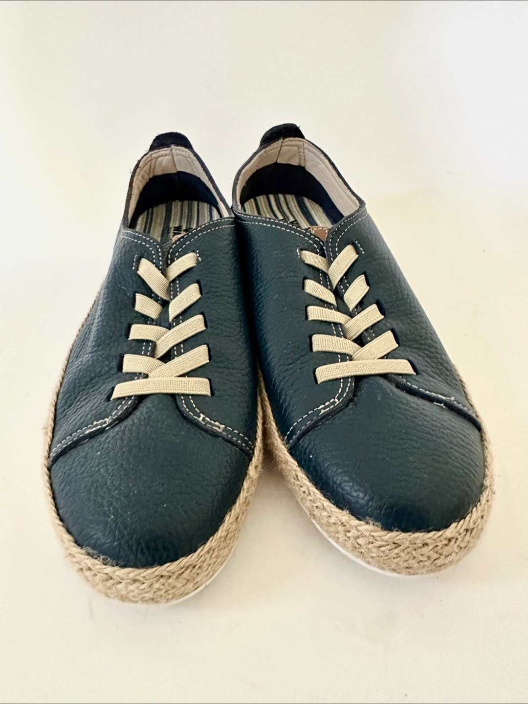 Like new ! I am selling these great navy blue sneakers. Features include beige-coloured laces and stitching. The sole is white. You will love taking them for a walk on a sunny day. From a smoke free, pet free home. Pick up in Alta Vista.