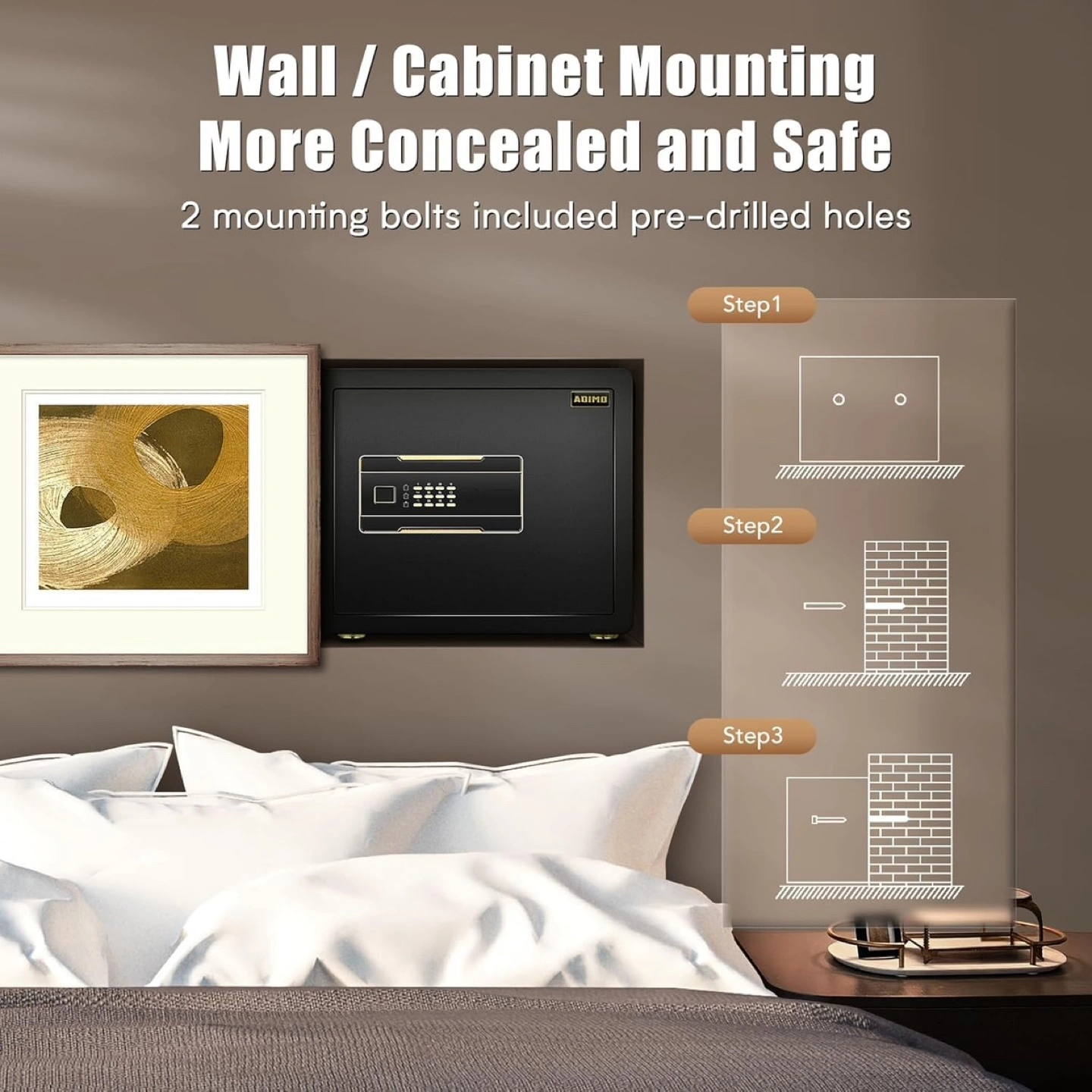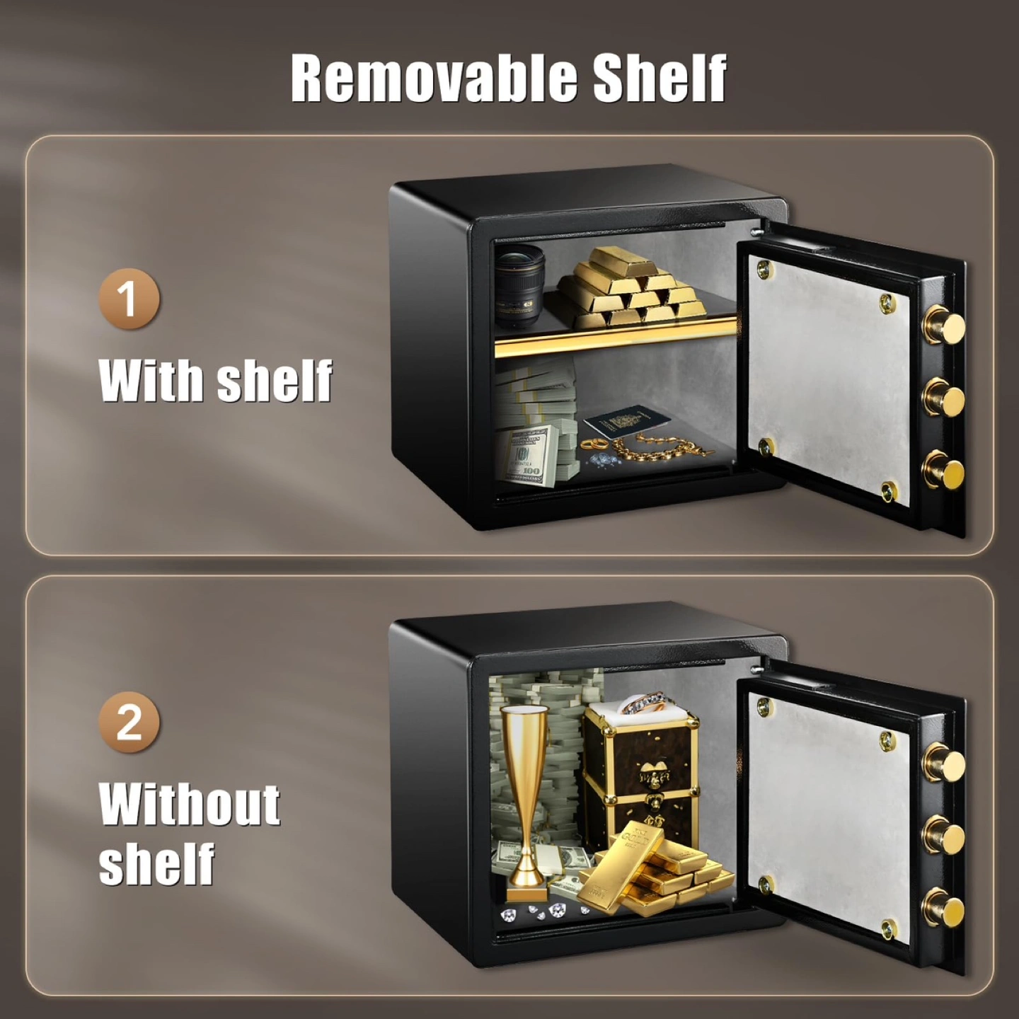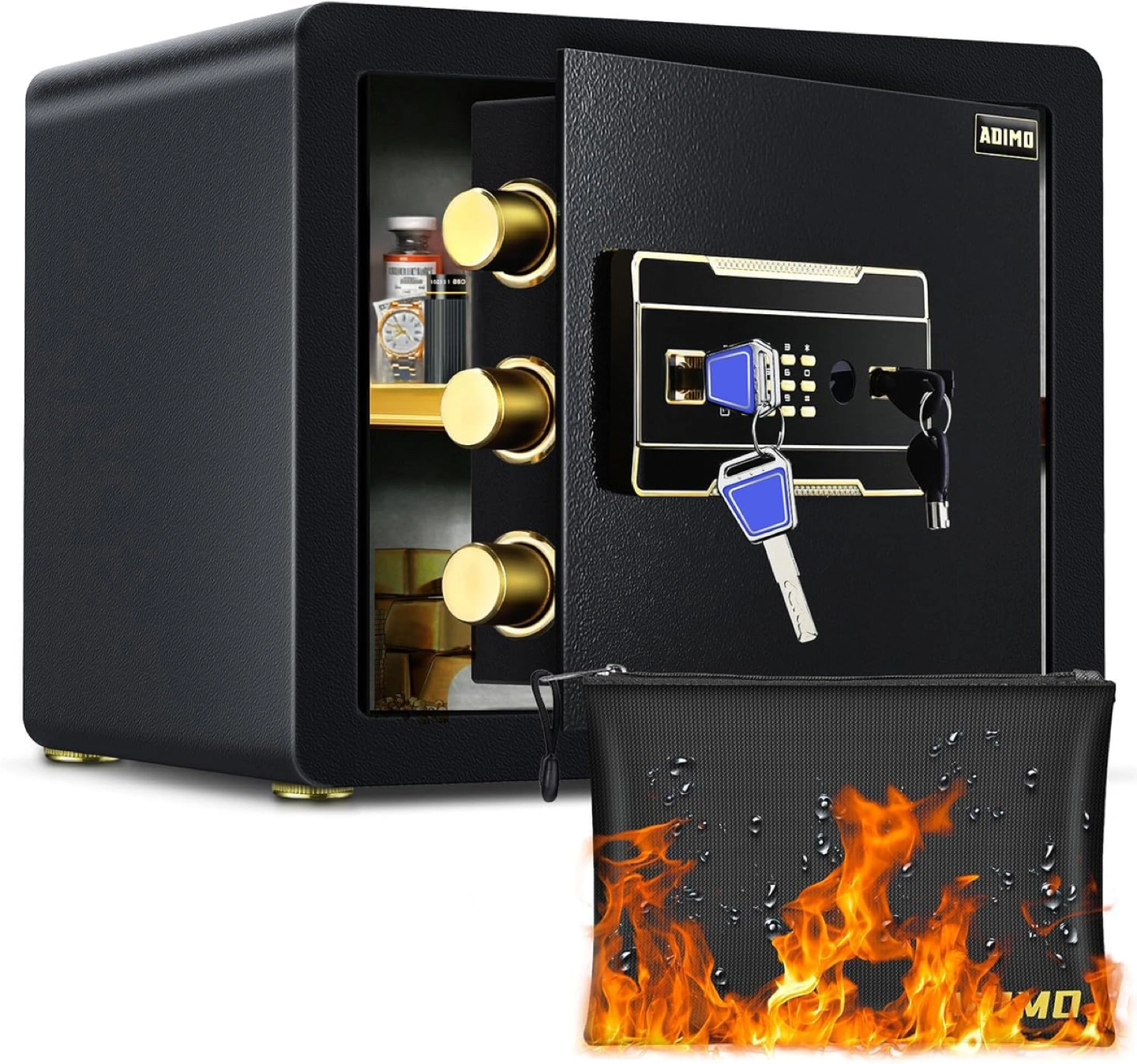 Brand new in original box Please check images for designs and prices DM for more information on any design. Pickup/Delivery available all over GTA Brand ADIMO Product Dimensions 32D x 42W x 35H Centimetres Lock type Combination, Dual Keys Colour Black Capacity 1.2 Cubic Feet Material Alloy Steel Super Strong Alloy and Fixed Design - ADIMO safe is made of heavy-duty alloy steel, thicker and safer from potential drilling and damage. The door has 3 thick bolts for added strength and anti-theft protection, and 2 expansion screw holes on the back, allowing you to mount the safe box on a wall or in a closet to prevent theft. It is 40% heavier than same-size safes, ensuring exquisite workmanship and professional safety protection. These make ADIMO safes for home the perfect choice for your valuables. Exterior: W15*D11.8*H11.8 Inch; Interior: W14.37*D11.42*H11.42 Inch. Dual Safety Alarms- The fireproof safe has its own intelligent alarm system, reminding you when your valuable is in potential danger. The alarm apparatus is sensitive, and the alarm will be automatically triggered. The small safe for home will make a warning sound immediately under the following two situations: ① entering the password incorrectly three times, ② encountering severe collision. Detachable Shelf and LED Light– The entire inside of the ADIMO small safe box fireproof waterproof is divided into 2 parts by a removable alloy steel shelf, with the upper and lower portions being 1:1. The appropriate inside apportionment satisfies classified placement. The shelf can be removed as well when there is no need. Equipped with internal LED lights, you can quickly access what you want in the dark. Waterproof and Fireproof Money Bag- Our safe box is equipped with a waterproof and fireproof money bag which is perfect to protect your small valuables and with this fire proof safe to store cash, checks, credit cards, jewelry, and important documents. Combination Lock- ADIMO 30 waterproof home safe offers double security. You can open the safes in two different ways. For daily opening, you can use a master key and a numeric code. If you forget the password, you can use the master key and emergency key to open it. An external battery prevents emergencies if the battery dies and the key is not present. Easy Organization with 5 Hooks- There are 5 hooks behind the safe door, where you can hang the spare keys of the house and the car (do not lock the keys in the safe), jewelry, and other valuables. Hooks can help you organize your items and reduce the time spent looking for items.