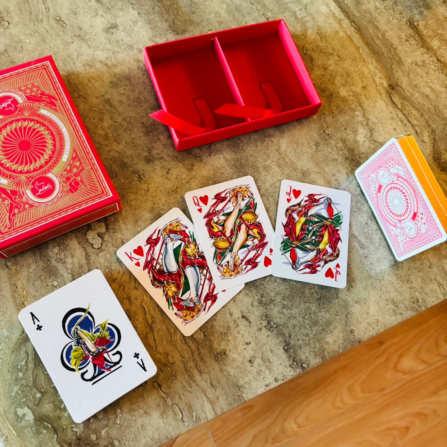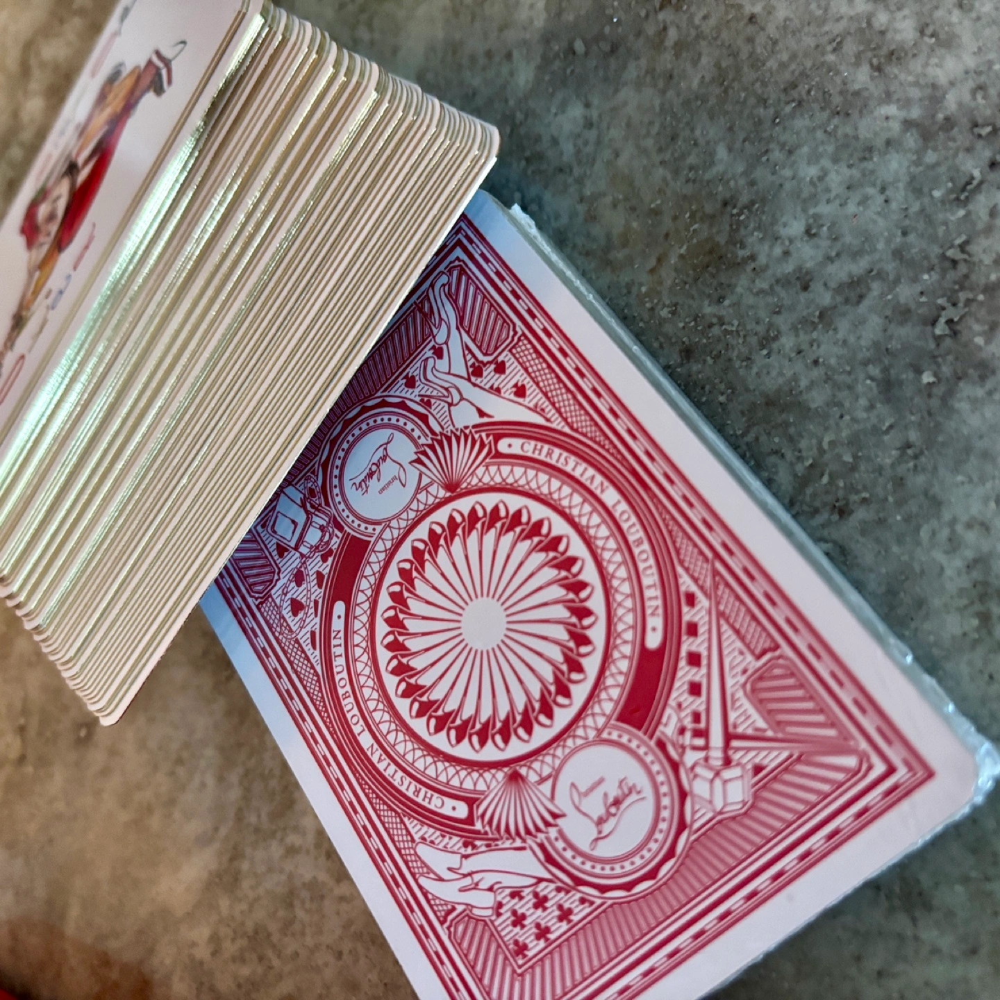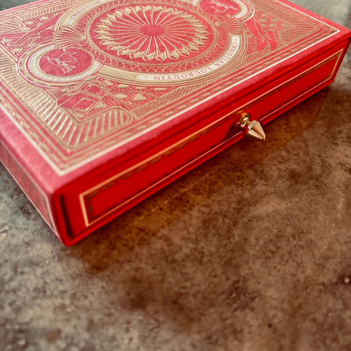 Gorgeous set of playing cards with real gold accents on box and card sides. Feels rich and luxurious in the hand. Rare and collectible set that keeps going up in value. Only one like it for sale on eBay for $540 with tax and shipping.