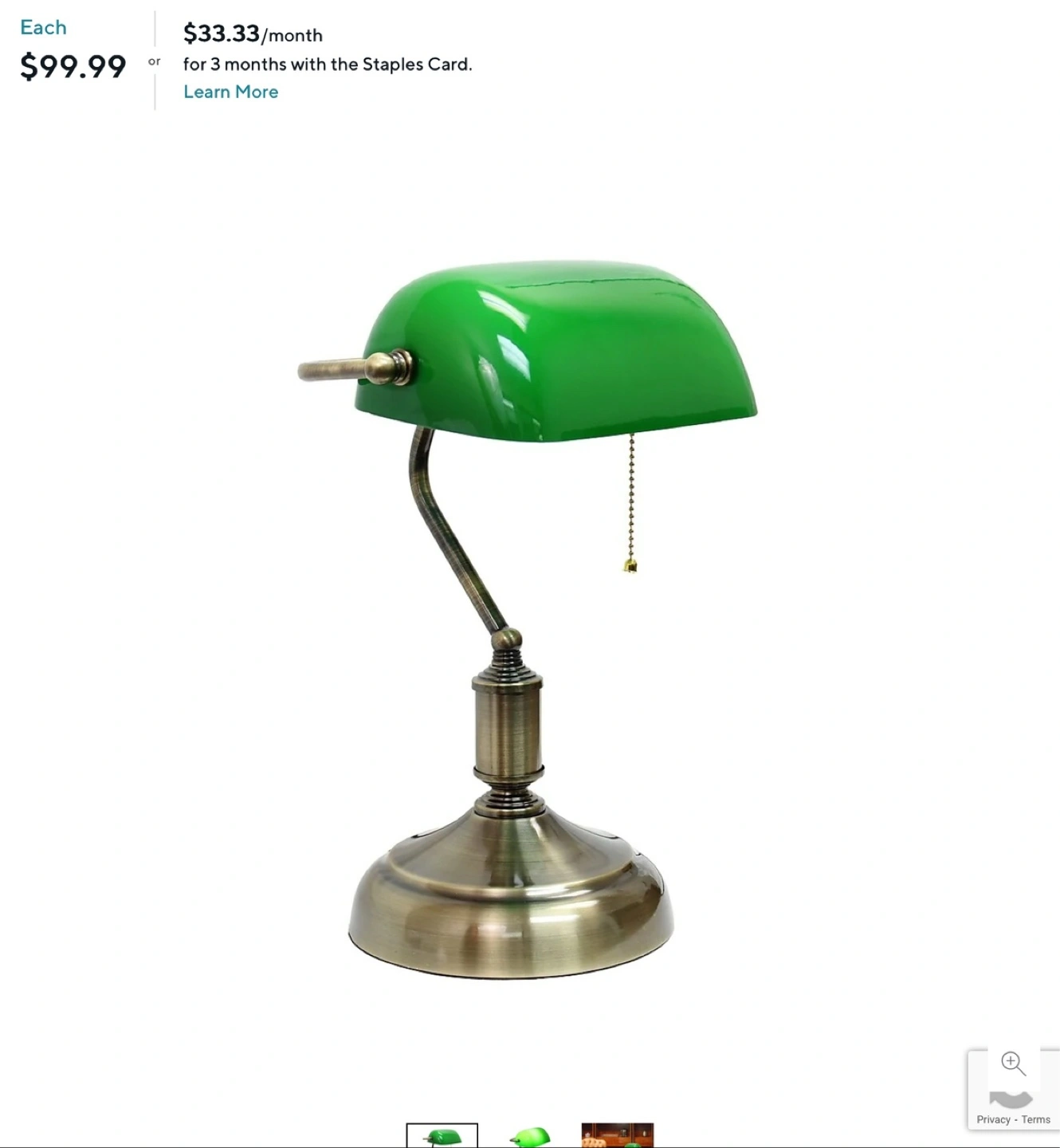A classic-looking lamp. Featuring a green, rounded lampshade. Base appears gold and round. These kinds of lamps make a great reading companion for a cozy evening. In a good condition. Sold as is. Pick-up only.