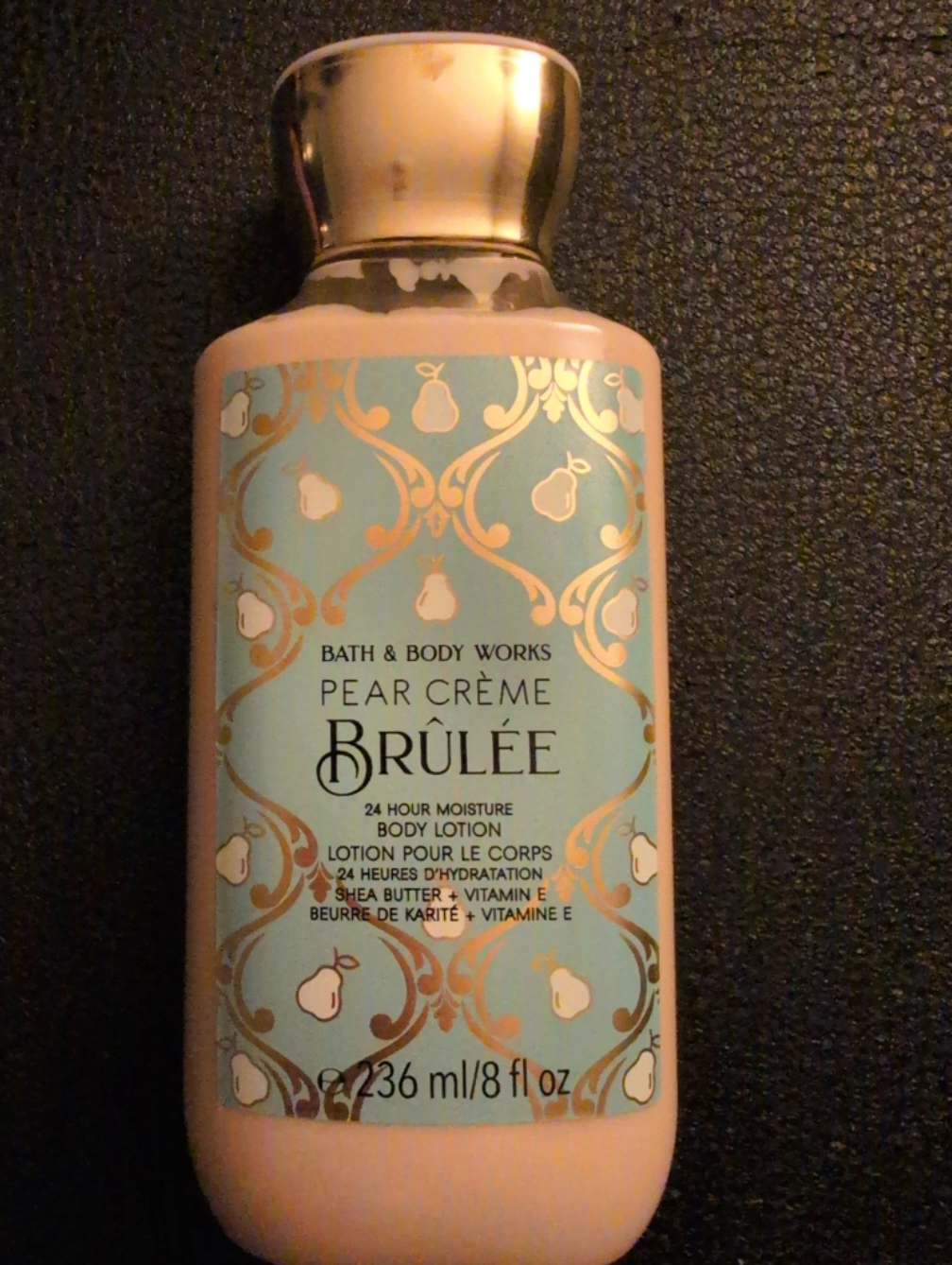 Unused Brandnew body lotion with pear fragrance. Features a gold cap. Contains shea butter and vitamin E. Ready to be picked up.