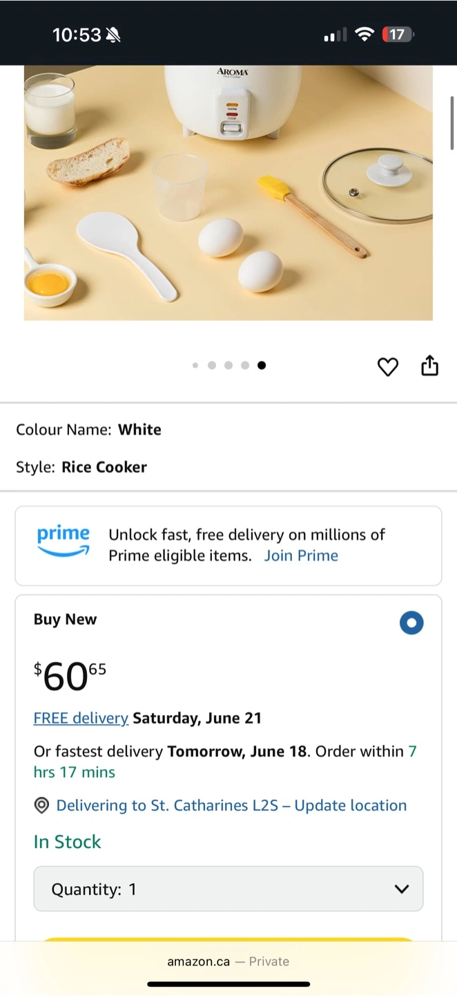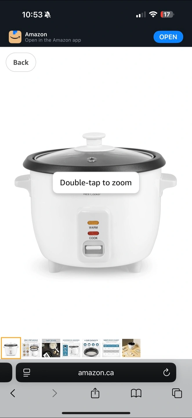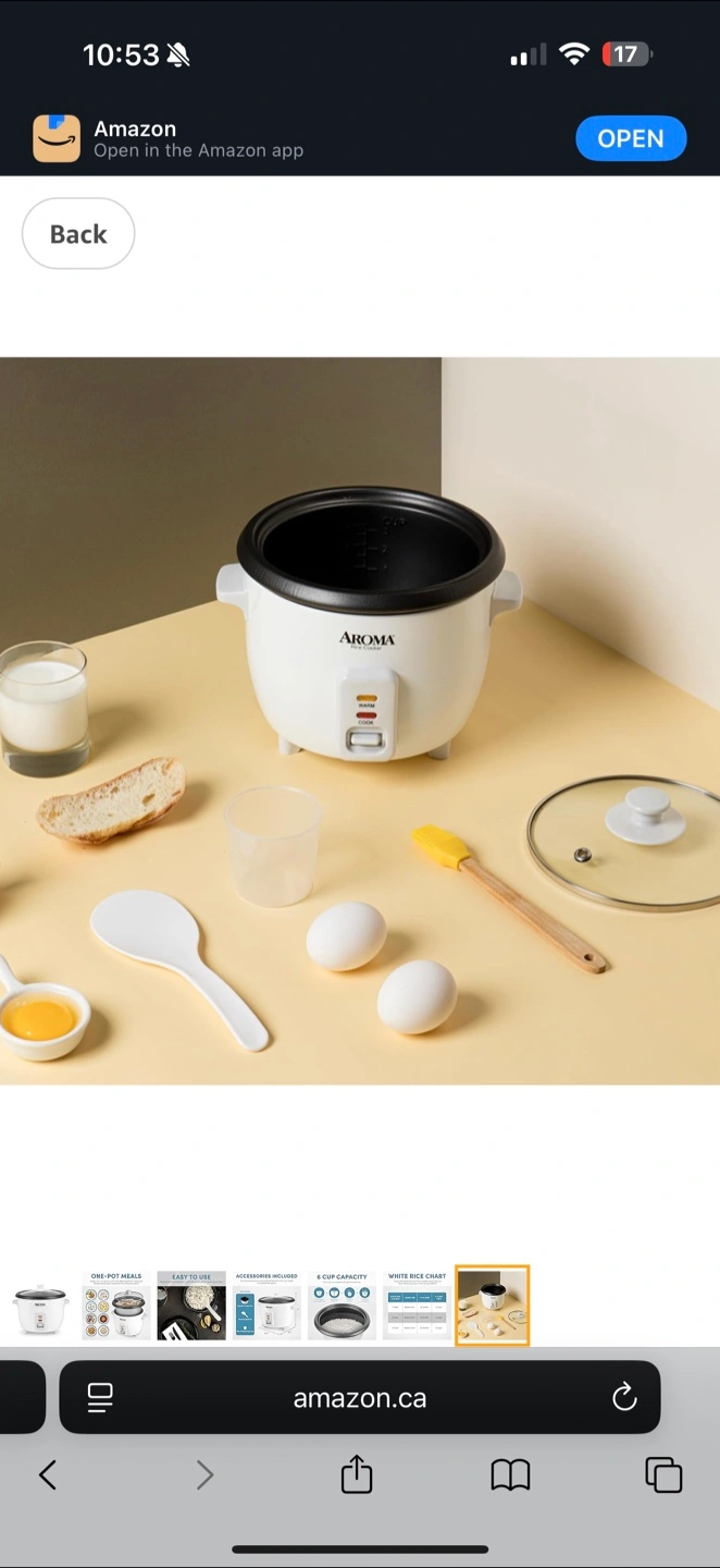 A white rice cooker. Features a glass lid and a warm/cook setting. Perfect for preparing a simple, healthy meal.6 cup cooked,3 cup uncooked. Retails over 60 plus tax on Amazon. Brand new in box