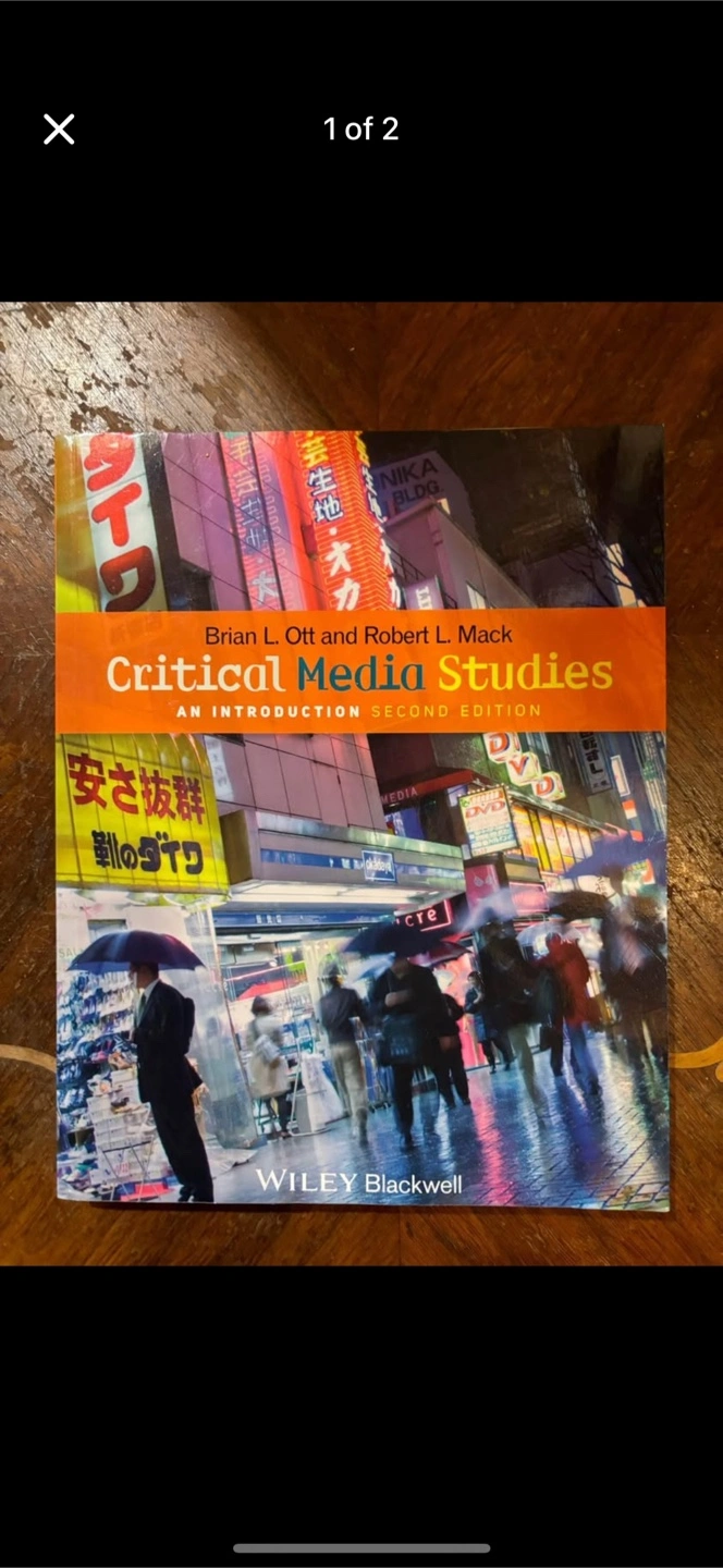 Book used at UofT media course. A textbook titled Critical Media Studies. Second edition. By Brian L. Ott and Robert L. Mack. The cover features images of Japan and a busy street. A textbook like this can be a helpful tool to develop a stronger understanding of the media around us.