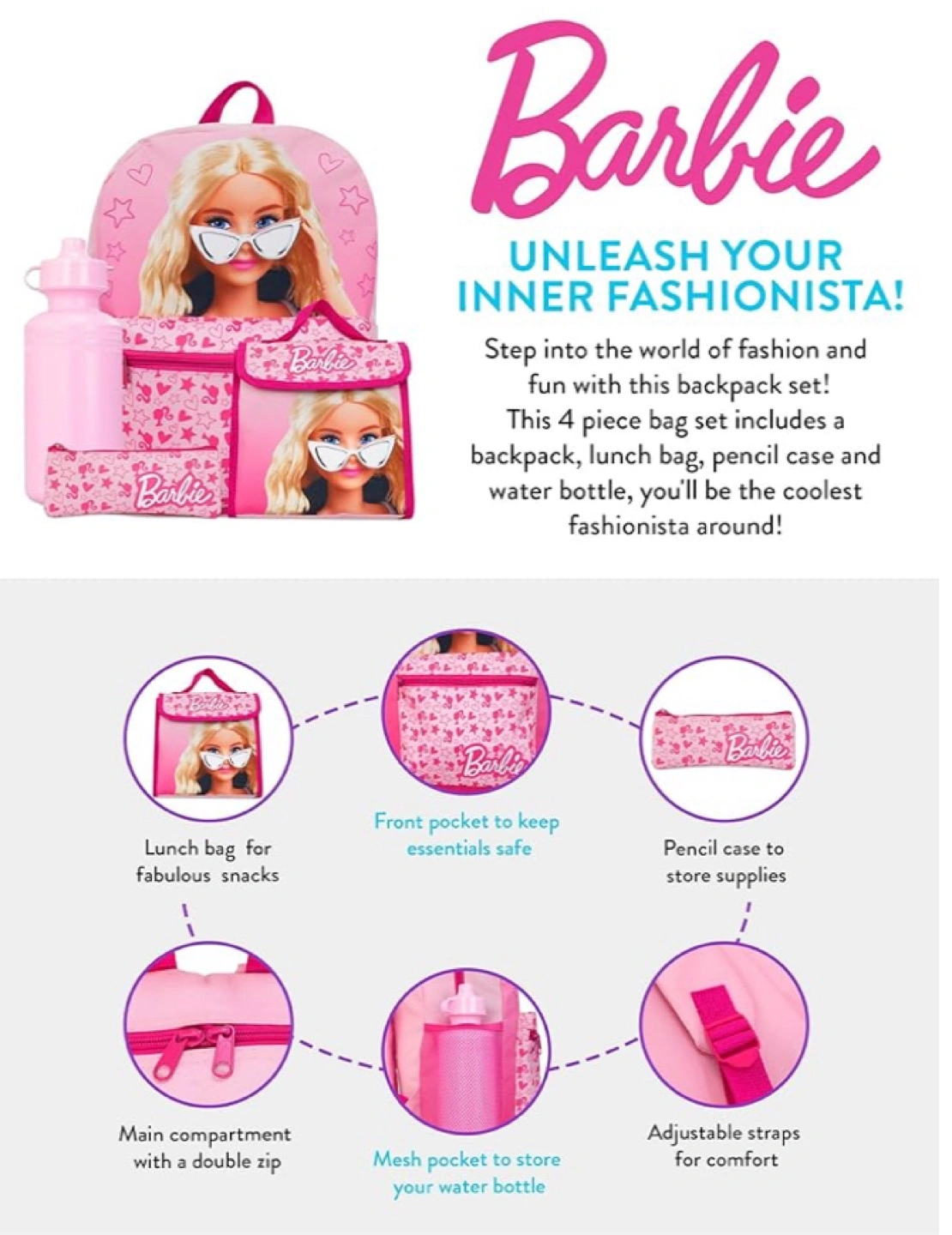 I'm selling a Barbie backpack set. It includes a backpack, lunchbox, pencil case and water bottle. Perfect for school ,summer camp or the beach . New with tags Meet up & cash only pls Meet up is in Nobleton