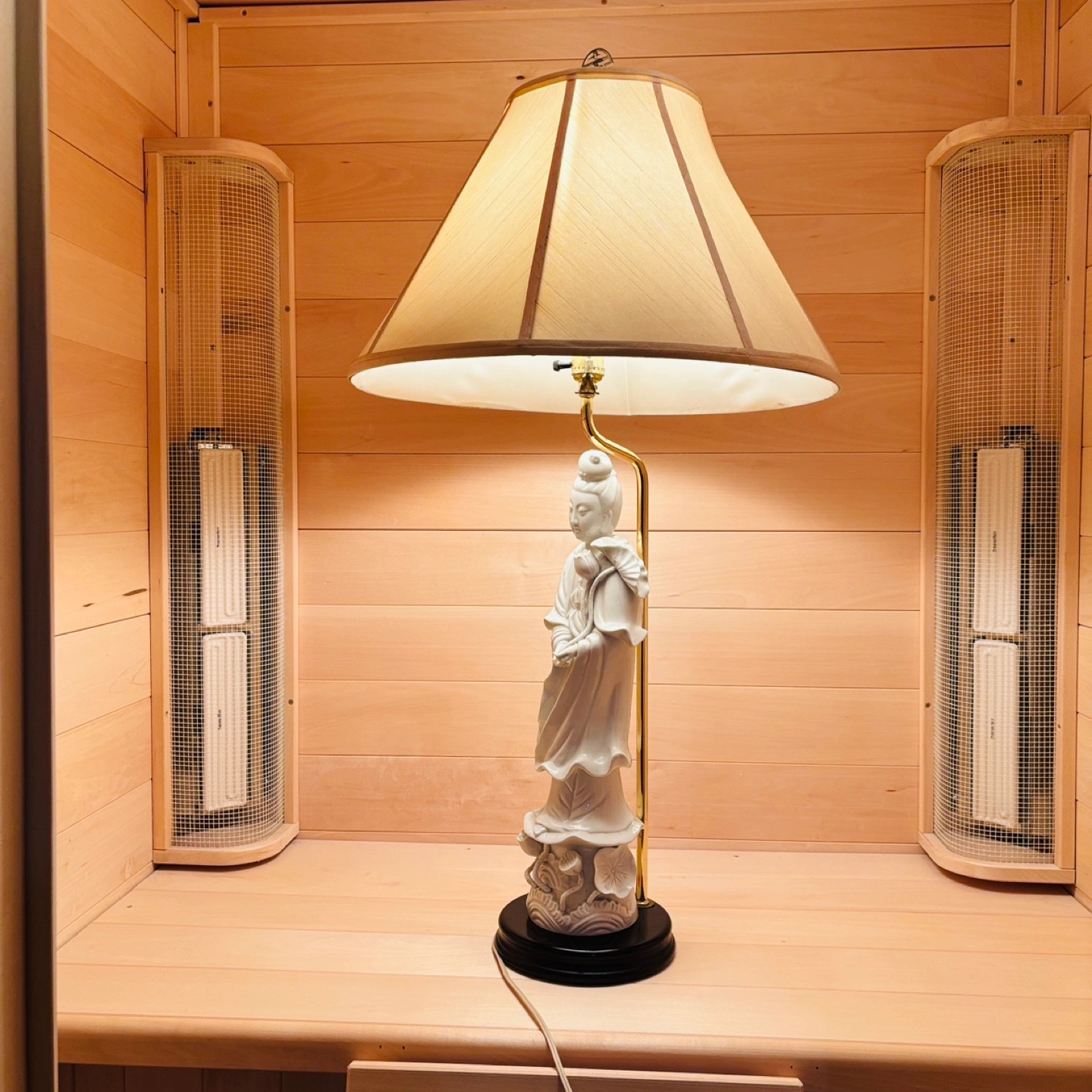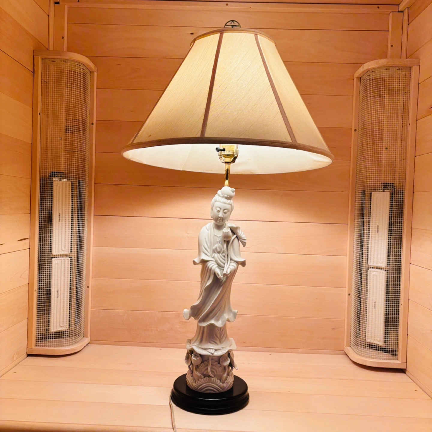 Exquisite piece with original lampshade (approx 21” diameter), and maker’s mark - Seyei China made in Nagoya. Fine porcelain china from Japan. Has an energy that feels so energizing yet soothing…