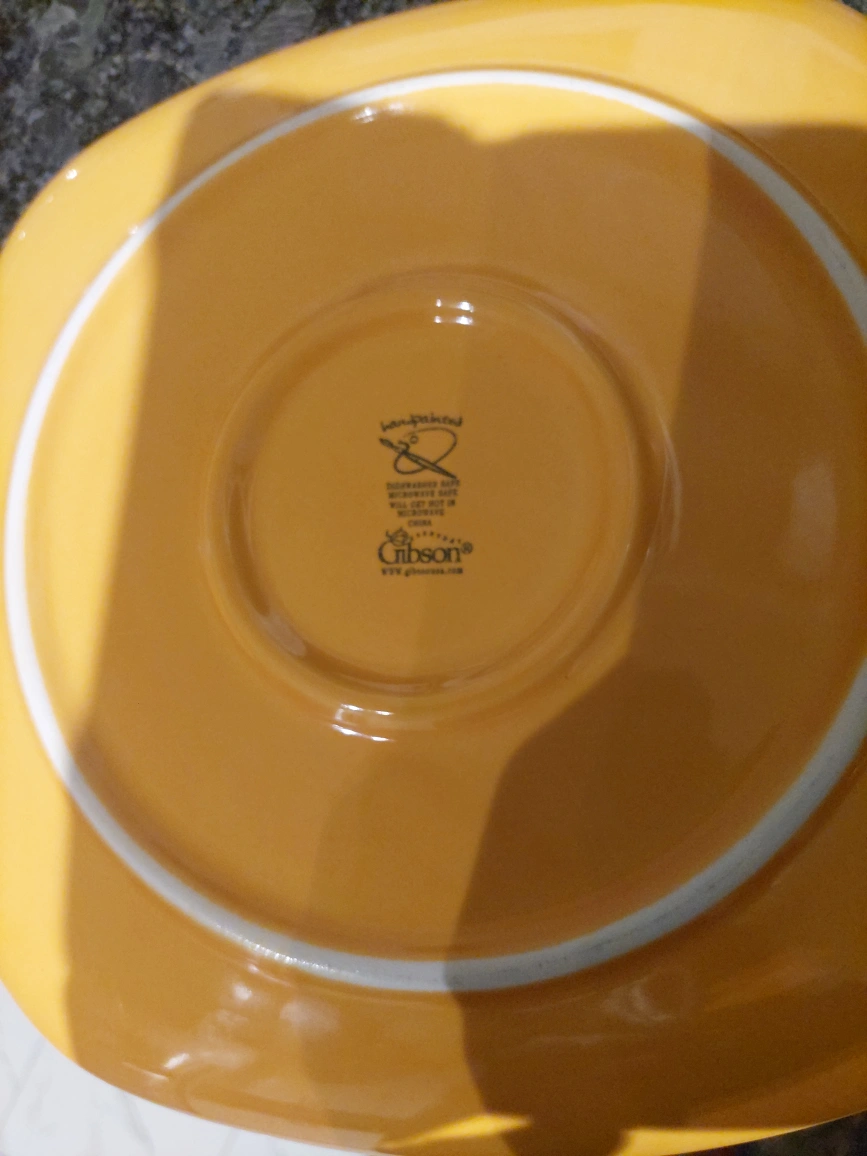 A plate in a lovely mustard yellow colour. Has a square shape, with rounded edges. Makes a perfect addition to your dining experience.