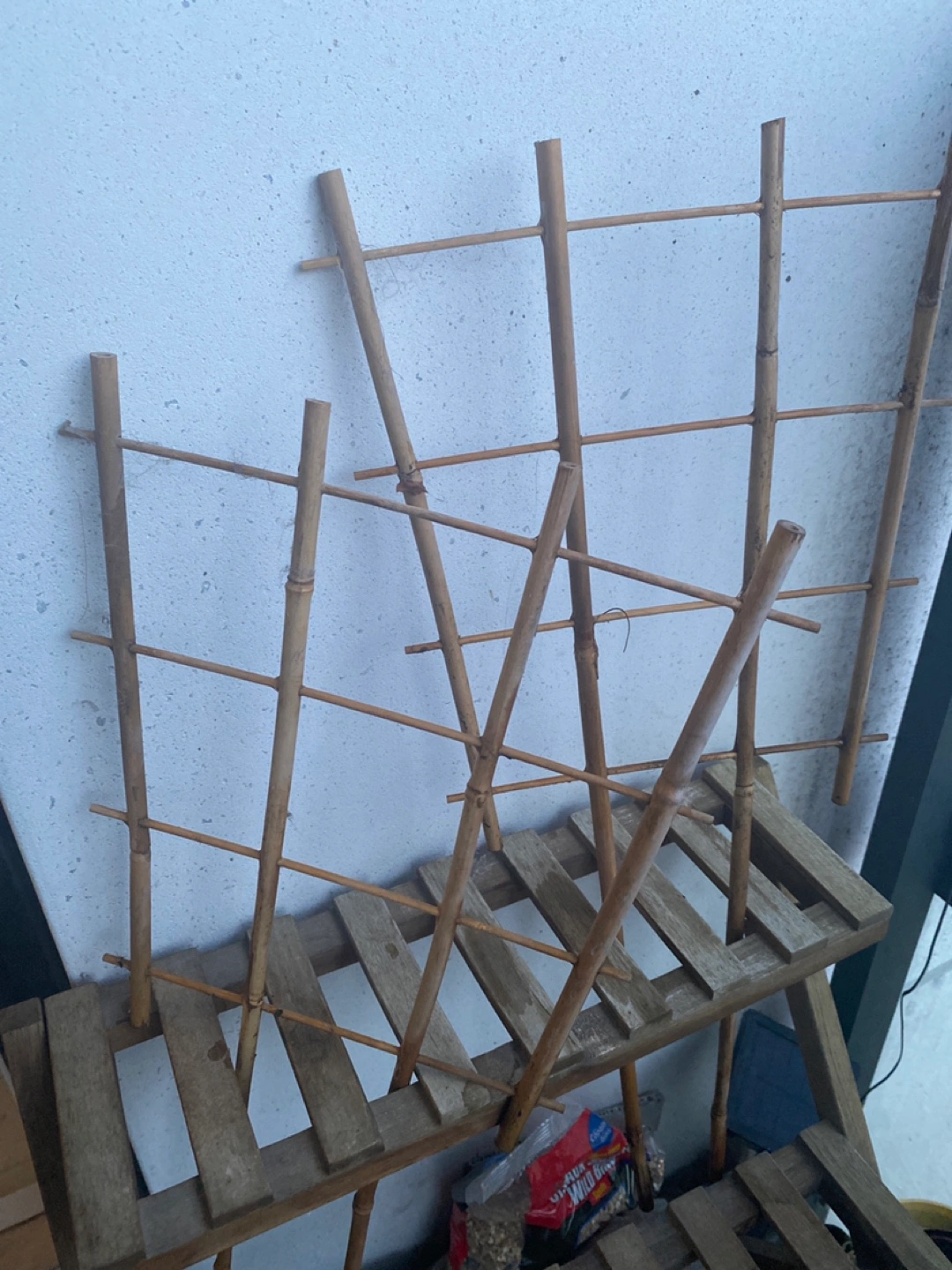 IKEA wood plant stand and miracle gro plant food and two plant support garden trellis Pickup near Adelaide east & sherbourne!