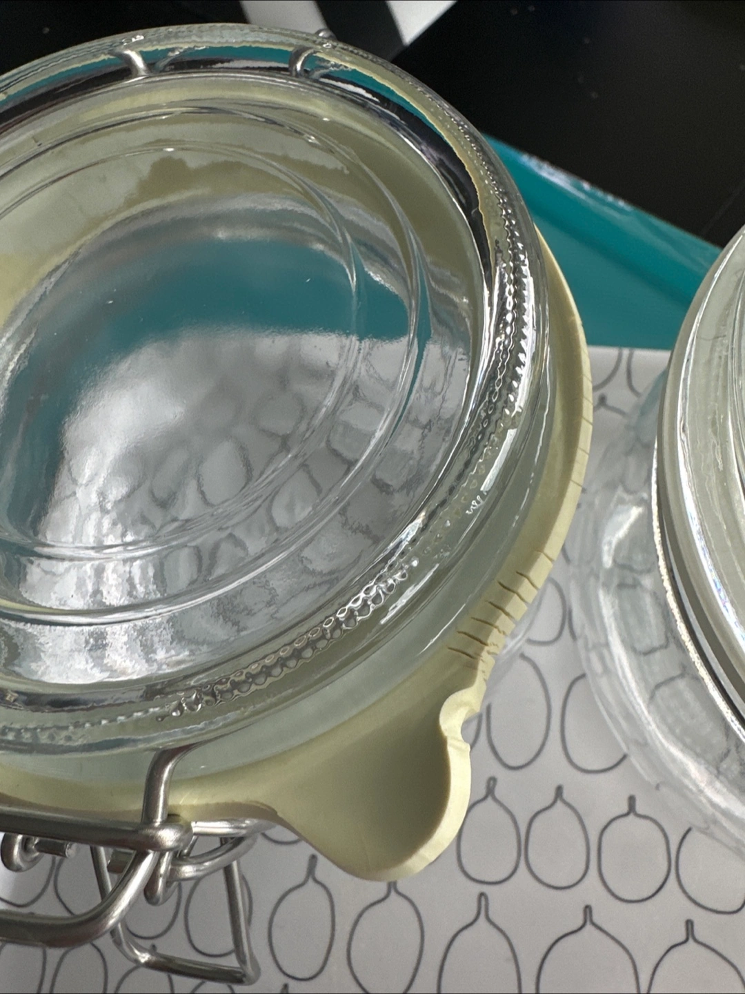 Two ikea Clear glass jars. Metal hinges secure the lids. A perfect container to store your favourite dried herbs and spices. Check my other listing if if you pick more items get discount