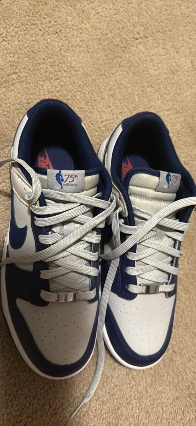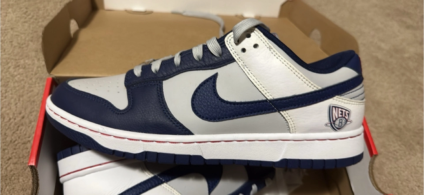 These stylish sneakers showcase a combination of colours. Featured is the Nike logo. The design includes the Brooklyn Nets logo and other details for a great look, that would look awesome walking down the street.