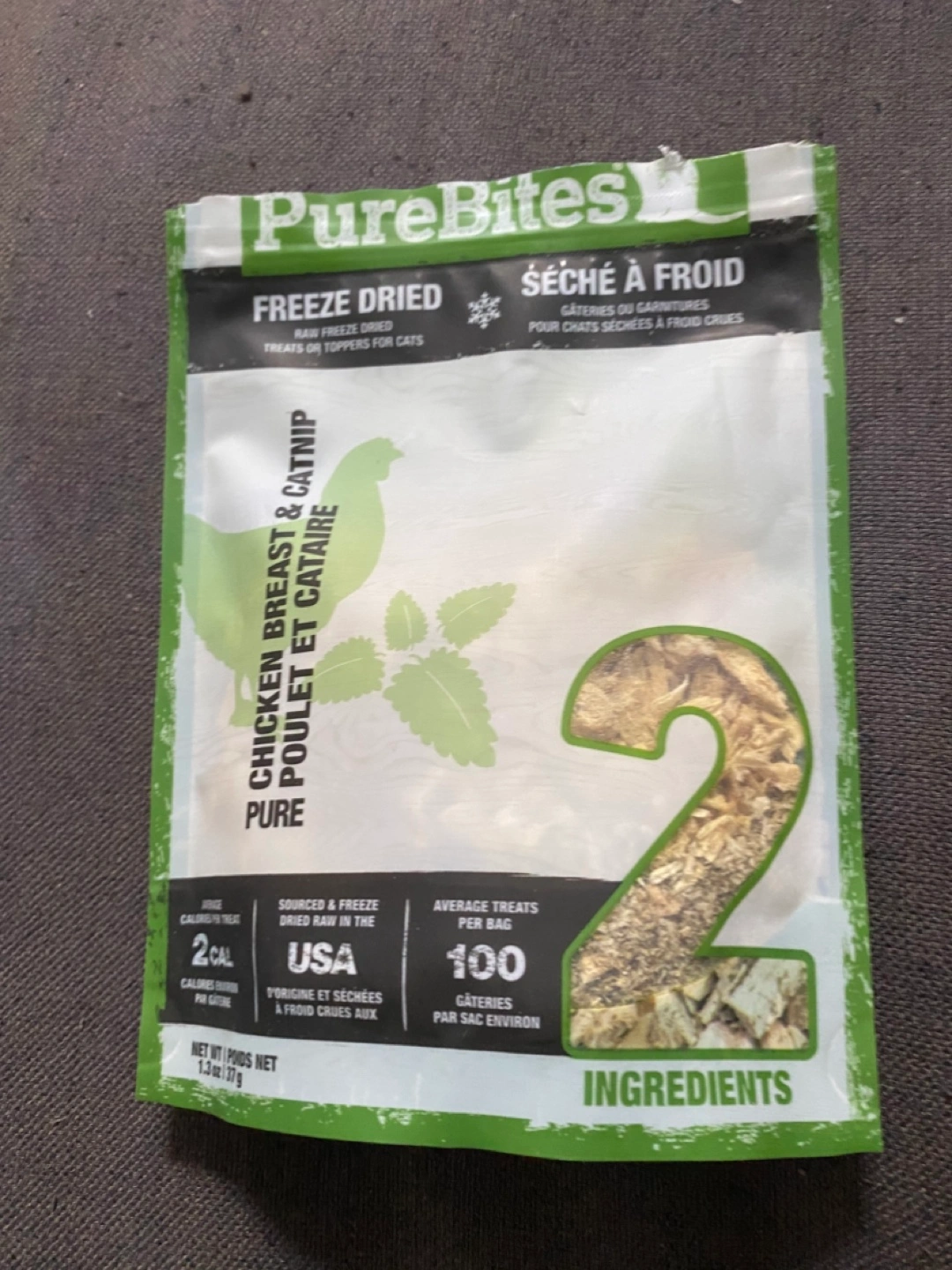A bag of freeze-dried chicken breast and catnip treats. Practically brand new - only 4 or 5 treats removed, my cat just isn’t interested. Free with pick-up near 401 & Kennedy